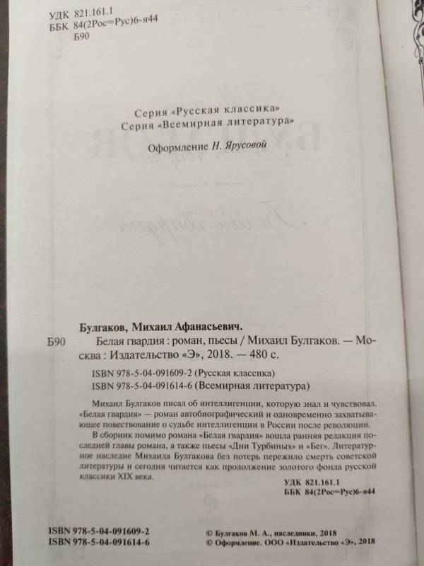 Объем, стр. 480 ISBN 978-5-04-091609-2 Автор Булгаков Михаил Афанасьевич Серия Русская классика Минимальный возраст 16+ Год издания книги 2018 Тип обложки Твердый переплет Иллюстрации Без иллюстраций Вес, г 346г Размеры 205х135х21 мм - Отзывы