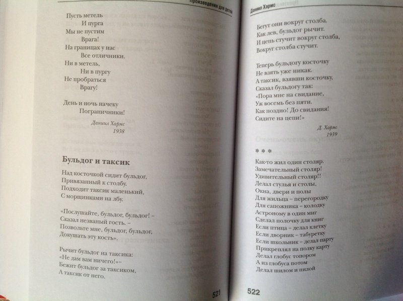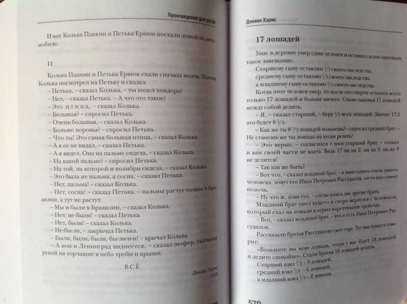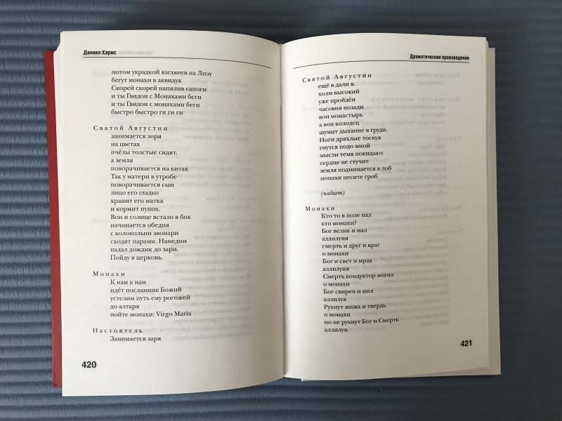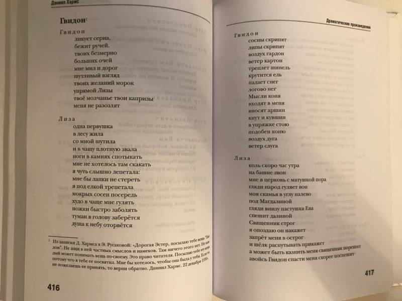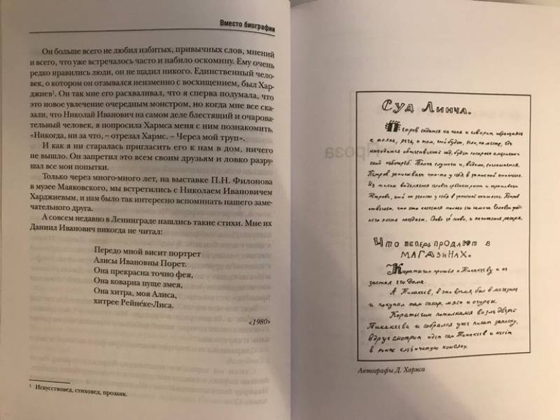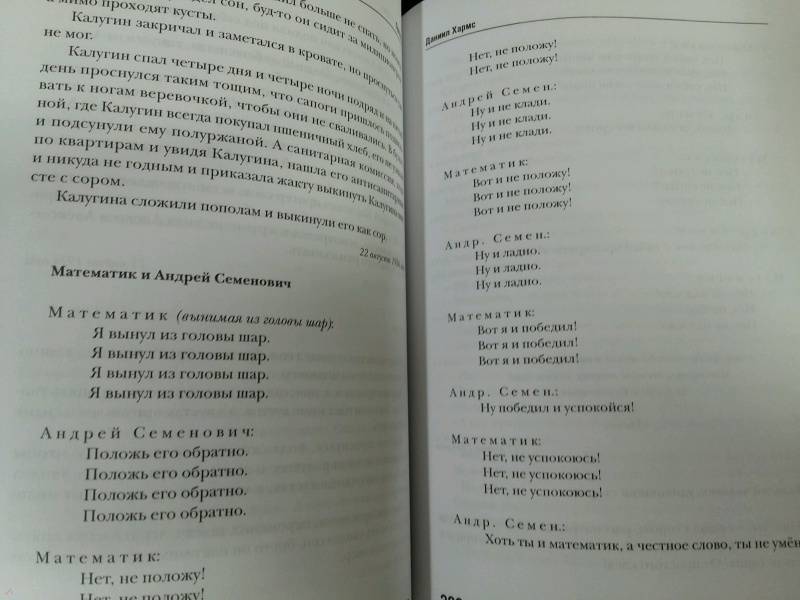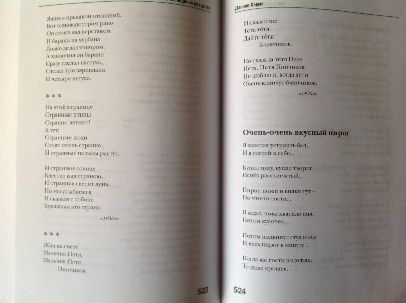 ОписаниеВ том включены проза Даниила Хармса, его драматические произведения, трактаты и статьи, тексты для детей. Открывает книгу раздел "Вместо биографии", куда вошли воспоминания друзей Хармса и его сестры Е.И.Грицыной, а также воспроизводится анкета, заполненная Хармсом в 1925 г. при вступлении во Всероссийский союз поэтов. Внутри разделов соблюдается хронологический порядок. Почти все тексты Хармса даны в его своеобразной орфографии и пунктуации. При этом издатели исходят из заявления Хармса "о поэтике ошибкой": "На замечание "Вы написали с ошибкой". Ответствуй: "Так всегда выглядит в моем написании"".В том включены проза Даниила Хармса, его драматические произведения, трактаты и статьи, тексты для детей. Открывает книгу раздел "Вместо биографии", куда вошли воспоминания друзей Хармса и его сестры Е.И.Грицыной, а также воспроизводится анкета, заполненная Хармсом в 1925 г. при вступлении во Всероссийский союз поэтов. Внутри разделов соблюдается хронологический порядок. Почти все тексты Хармса даны в его своеобразной орфографии и пунктуации. При этом издатели исходят из заявления Хармса "о поэтике ошибкой": "На замечание "Вы написали с ошибкой". Ответствуй: "Так всегда выглядит в моем написании"".