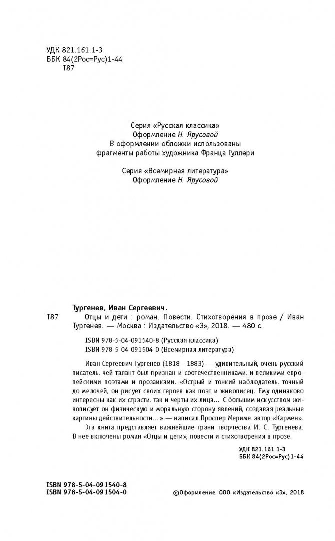 Объем, стр. 480 ISBN 978-5-04-091540-8 Автор Тургенев Иван Сергеевич Серия Русская классика Минимальный возраст 16+ Год издания книги 2018 Тип обложки Твердый переплет Иллюстрации Без иллюстраций Вес, г 340г Размеры 206х133х20 мм - Отзывы