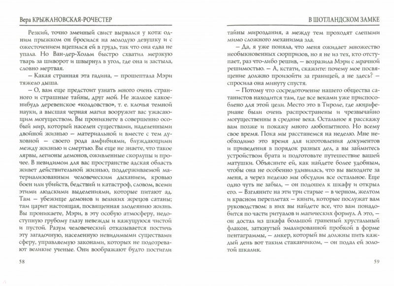 ОписаниеВера Ивановна Крыжановская-Рочестер (1857-1924) - русская романистка, известная женскими, историческими и оккультными произведениями.Мистический роман "В Шотландском замке" продолжает трилогию "В царстве тьмы". Главная героиня Мэри, проживая на окраине Петербурга вместе с больной матерью, братом и сестрой в нищете, в канун Нового года принимает предложение таинственного незнакомца о постоянной работе. Но что кроется за заманчивым предложением - истинная доброта или мир чёрной магии, сатанизма, призраков и настоящих демонов?..Вера Ивановна Крыжановская-Рочестер (1857-1924) - русская романистка, известная женскими, историческими и оккультными произведениями.Мистический роман "В Шотландском замке" продолжает трилогию "В царстве тьмы". Главная героиня Мэри, проживая на окраине Петербурга вместе с больной матерью, братом и сестрой в нищете, в канун Нового года принимает предложение таинственного незнакомца о постоянной работе. Но что кроется за заманчивым предложением - истинная доброта или мир чёрной магии, сатанизма, призраков и настоящих демонов?..
