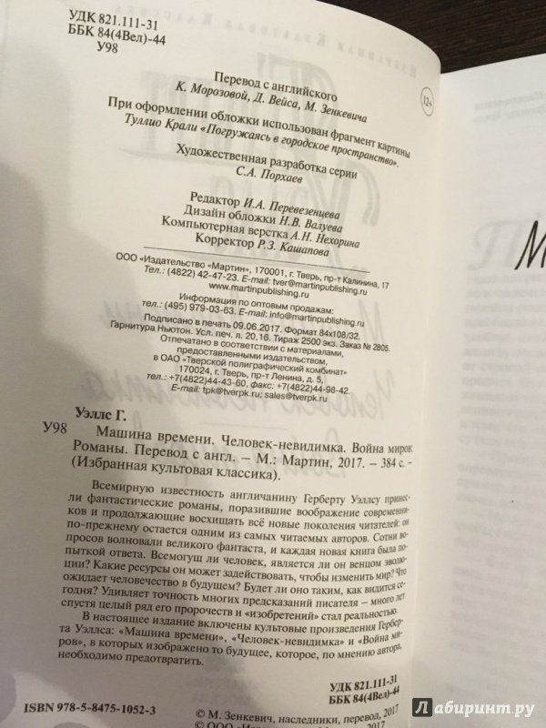Объем, стр. 384 ISBN 978-5-8475-1052-3, 978-5-8475-1193-3 Автор Уэллс Герберт Джордж, Морозова К., Вейс Дэвид, Зенкевич М. Переводчик Морозова К., Вейс Дэвид, Зенкевич М. Серия Избранная культовая классика Минимальный возраст 12+ Год издания книги 2019 Тип обложки Твердый переплет Иллюстрации Без иллюстраций Вес, г 400г Размеры 190х125х22 мм - Отзывы