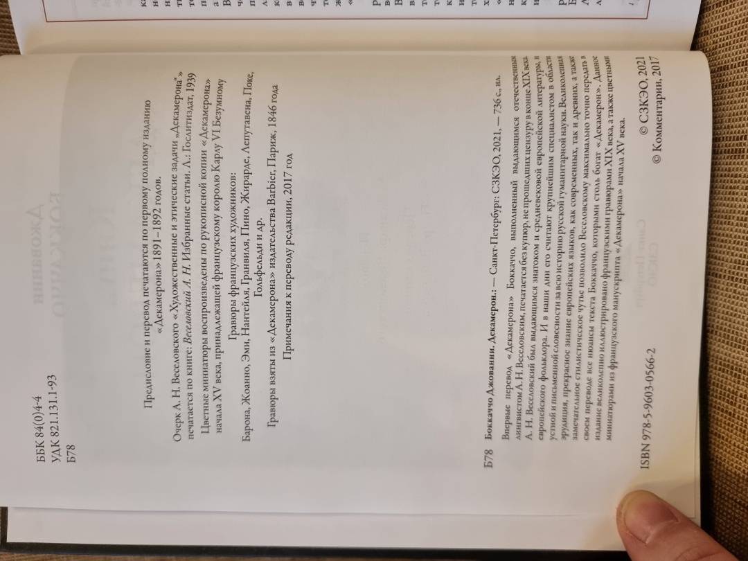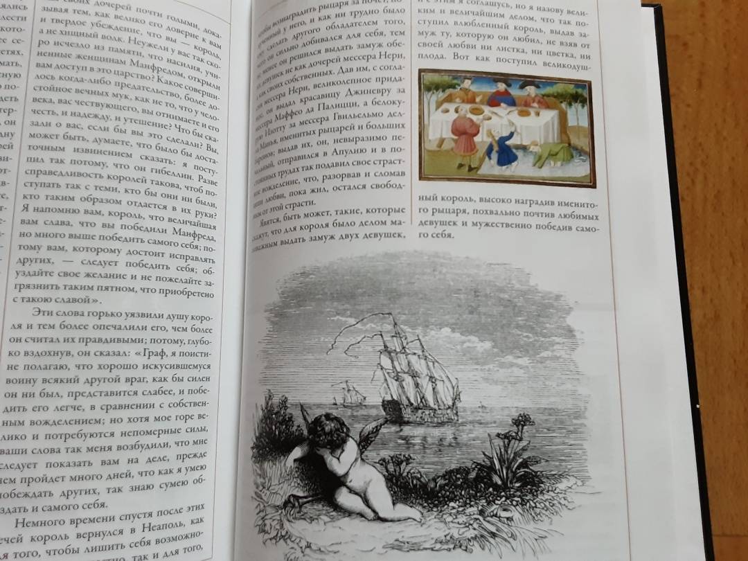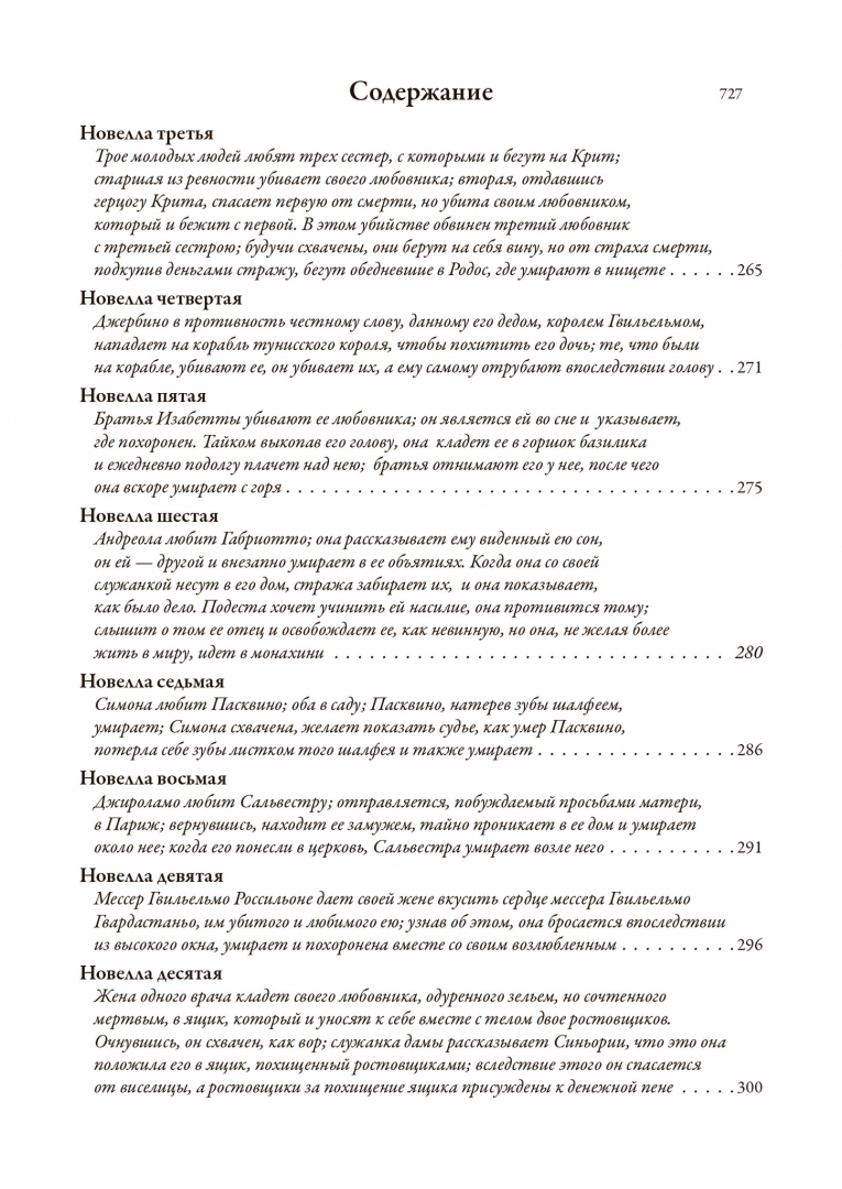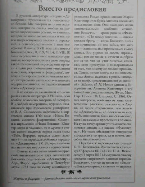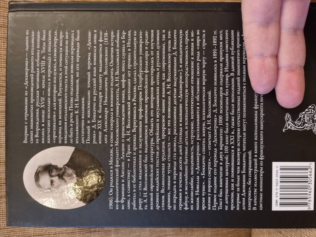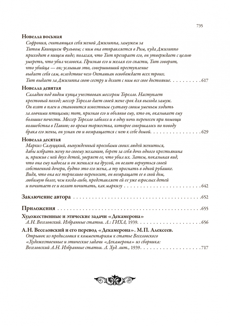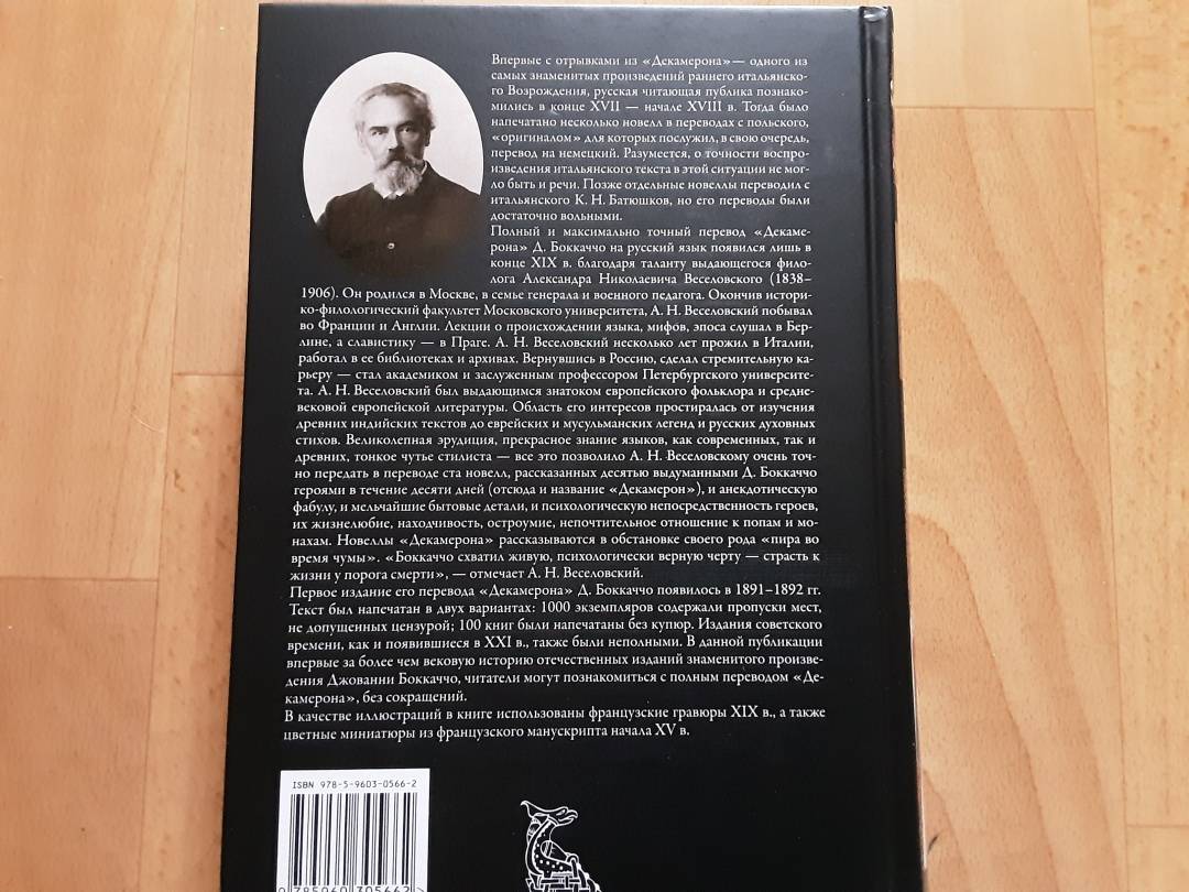 ОписаниеВпервые с отрывками из "Декамерона" - одного из самых знаменитых произведений раннего итальянского Возрождения, русская читающая публика познакомилась в конце XVII века. Именно тогда было напечатано несколько новелл Боккаччо в переводах с польского, оригиналом для которых послужил перевод на немецкий. Разумеется, о точности воспроизведения итальянского оригинала в этой ситуации не могло быть и речи. Позже отдельными новеллами занимался Батюшков, но его переводы были достаточно вольными.Максимально точное изложение всего "Декамерона" на русском языке появилось лишь в самом конце XIX века благодаря талантам выдающегося отечественного филолога Александра Николаевича Веселовского. Будущий блестящий лингвист появился на свет в 1838 году в Москве в генеральской семье. Окончив историко-филологический факультет Московского университета, побывал во Франции и Англии. В Берлине он изучал лекции о происхождения языка, мифов, эпоса, а славистику - в Праге. Позже Веселовский несколько лет жил в Италии, работая в ее библиотеках и архивах. Вернувшись в Россию, он сделал стремительную академическую карьеру, став академиком и заслуженным профессором Петербургского университета. Веселовский был выдающимся знатоком и средневековой европейской литературы, и европейского фольклора. Область его интересов простиралась от изучения древних индийских текстов до еврейских и мусульманских легенд и русских духовных стихов. И в наши дни его считают крупнейшим специалистом в области устной и письменной словесности за всю историю русской гуманитарной науки. Великолепная эрудиция, прекрасное знание европейских языков, как современных, так и древних, а также замечательное стилистическое чутье позволило Веселовскому максимально точно передать в своем переводе все нюансы текста Боккаччо, которыми столь богат "Декамерон".Первое издание его перевода появилось в 1891-1892 гг. Текст был напечатан в двух вариантах; 1000 экземпляров содержали пропуски мест, не допущенных цензурой, и лишь 100 книг были напечатаны без купюр. Примечательно, что издания советского времени, как и публикации "Декамерона", появившиеся уже в XXI веке, также были неполными. Данная публикация лишена этого недостатка. Впервые за более чем вековую историю отечественных изданий знаменитого произведения Боккаччо, читатели могут познакомиться с полным переводом "Декамерона" без каких-либо сокращений.Данное издание великолепно иллюстрировано французскими гравюрами XIX века, а также цветными миниатюрами из французского манускрипта начала XV века.СвернутьВпервые с отрывками из "Декамерона" - одного из самых знаменитых произведений раннего итальянского Возрождения, русская читающая публика познакомилась в конце XVII века. Именно тогда было напечатано несколько новелл Боккаччо в переводах с польского, оригиналом для которых послужил перевод на немецкий. Разумеется, о точности воспроизведения итальянского оригинала в этой ситуации не могло быть и речи. Позже отдельными новеллами занимался Батюшков, но его переводы были достаточно вольными.Максимально точное изложение всего "Декамерона" на русском языке появилось лишь в самом конце XIX века благодаря талантам выдающегося отечественного филолога Александра Николаевича Веселовского. Будущий блестящий лингвист появился на свет в 1838 г