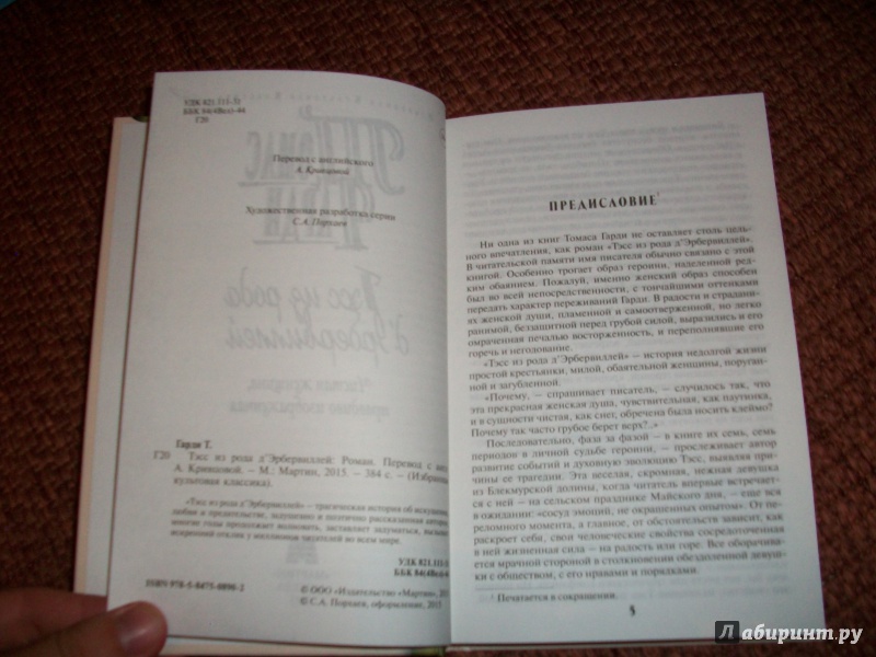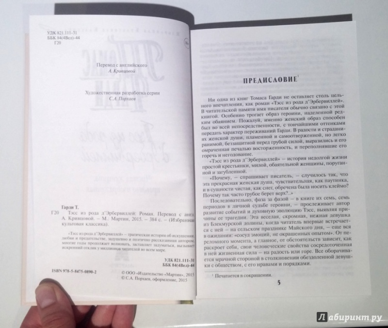 Томас Гарди: Тэсс из рода д'Эрбервиллей