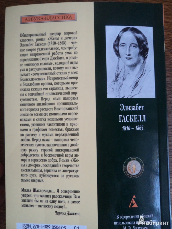 Объем, стр. 800 ISBN 978-5-389-05067-9 Автор Гаскелл Элизабет, Проценко Ирина, Глебовская Александра Переводчик Проценко Ирина, Глебовская Александра Викторовна Серия Классика (мяг) Год издания книги 2014 Тип обложки Мягкий переплет Иллюстрации Без иллюстраций Вес, г 342г Размеры 180х117х29 мм - Отзывы