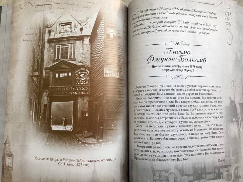 ОписаниеВеликий английский писатель сэр Оскар Уайльд - самая яркая и неординарная личность позднего Викторианского периода. Его единственный опубликованный при жизни роман - "Портрет Дориана Грея" - стал самым скандальным и самым успешным среди всех созданных автором произведений. В новом коллекционном издании бессмертного шедевра английской литературы драматичная, завораживающе-интригующая история Дориана Грея разворачивается на улицах Лондона XIX века. Эксклюзивные работы фотомастеров эпохи правления королевы Виктории, времен появления фотографии как одного из направлений искусства, перенесут нас в ту эпоху, на те улицы, покажут реальных людей и нравы викторианской Англии.Жизнь самого писателя раскрывается в личной переписке Оскара Уайльда с семьей и любимым, с редакторами и критиками, с многими известными современниками. Непревзойденный комедиограф, мастер блестящих парадоксов, поклонник изящных искусств, способный неординарно мыслить, гениально писать, блестяще говорить, умел жить красиво и, по мнению света, - зашел слишком далеко… тем лишив себя забвения.СвернутьВеликий английский писатель сэр Оскар Уайльд - самая яркая и неординарная личность позднего Викторианского периода. Его единственный опубликованный при жизни роман - "Портрет Дориана Грея" - стал самым скандальным и самым успешным среди всех созданных автором произведений. В новом коллекционном издании бессмертного шедевра английской литературы драматичная, завораживающе-интригующая история Дориана Грея разворачивается на улицах Лондона XIX века. Эксклюзивные работы фотомастеров эпохи правления королевы Виктории, времен появления фотографии как одного из направлений искусства, перенесут нас в ту эпоху, на те улицы, покажут реальных людей и нравы викторианской Англии.Жизнь самого писателя раскрывается в личной переписке Оскара Уайльда с семьей и любимым, с редакторами и критиками, с многими известными современниками. Непревзойденный комедиограф, мастер блестящих парадоксов, поклонник изящных искусств, способный неординарно мыслить, гениально писать, блестяще говорить, умел жить красиво и, по мнению света, - зашел слишком далеко… тем лишив себя забвения.СвернутьСвернуть
