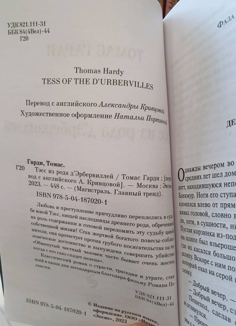 Томас Гарди: Тэсс из рода д'Эрбервиллей