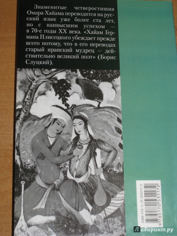 ОписаниеЗнаменитые четверостишия Омара Хайама переводятся на русский язык уже более ста лет, но с наивысшим успехом - в 70-е годы XX века."Хайам Германа Плисецкого убеждает прежде всего потому, что в его переводах старый иранский мудрец - действительно великий поэт" (Борис Слуцкий).Знаменитые четверостишия Омара Хайама переводятся на русский язык уже более ста лет, но с наивысшим успехом - в 70-е годы XX века."Хайам Германа Плисецкого убеждает прежде всего потому, что в его переводах старый иранский мудрец - действительно великий поэт" (Борис Слуцкий).