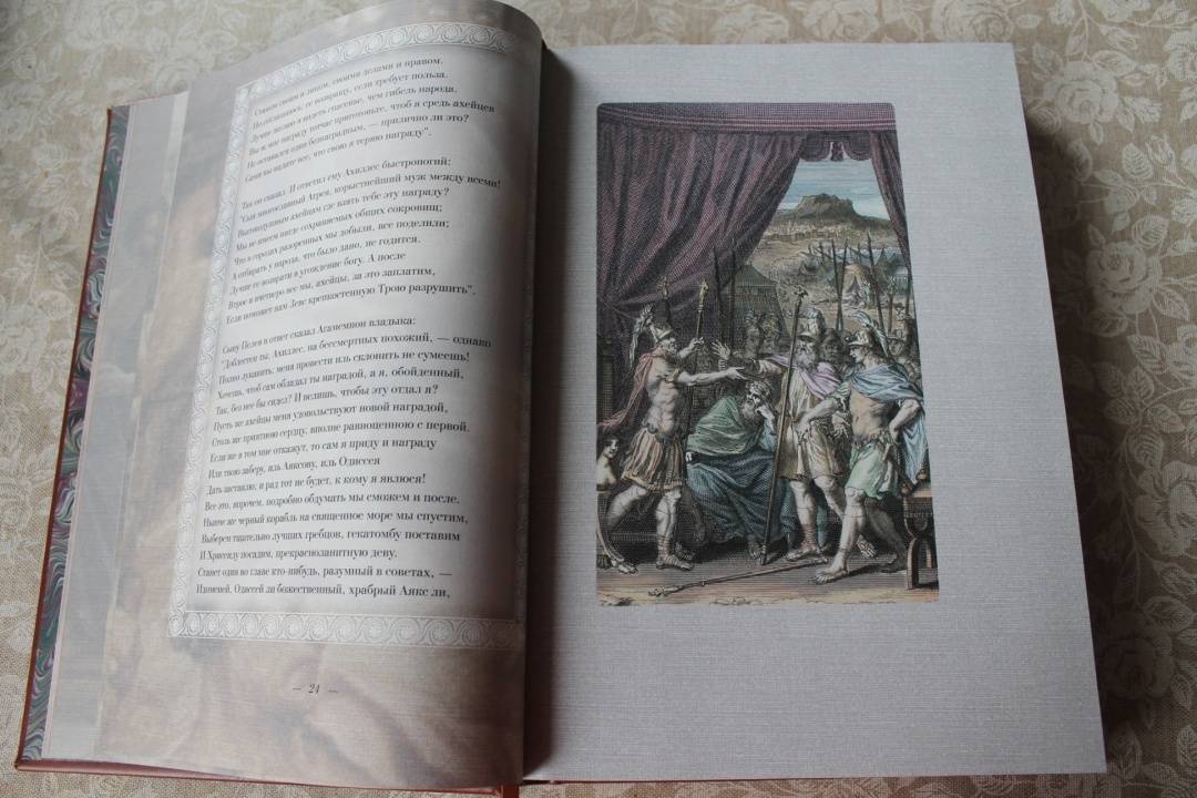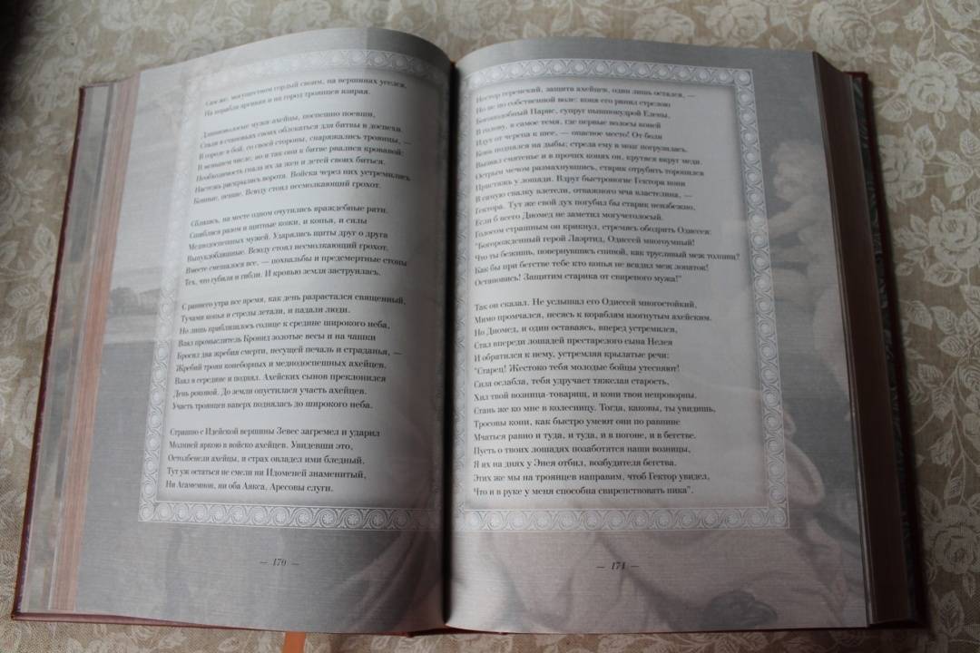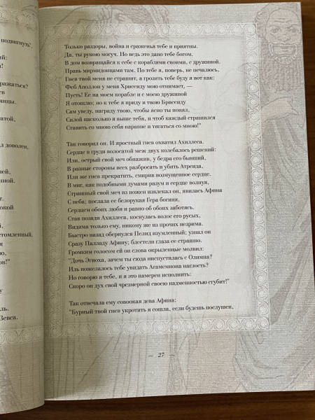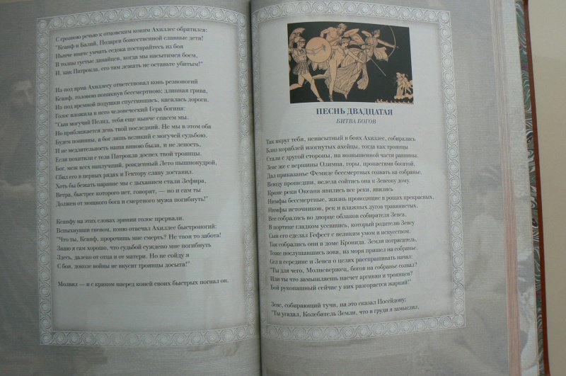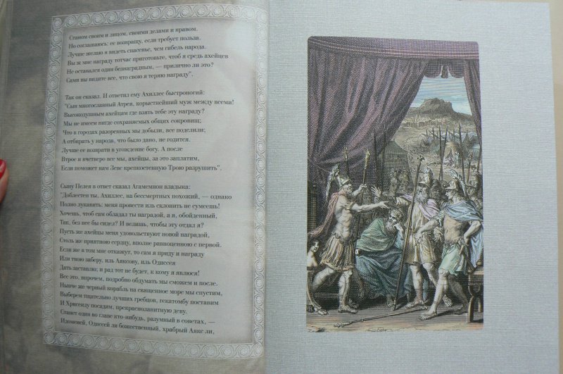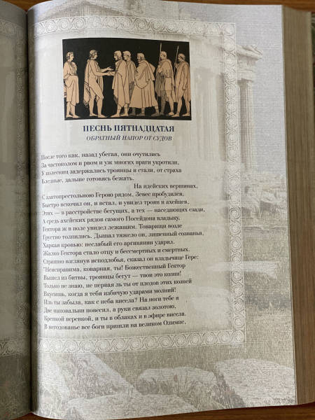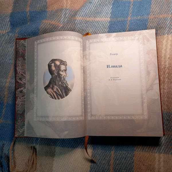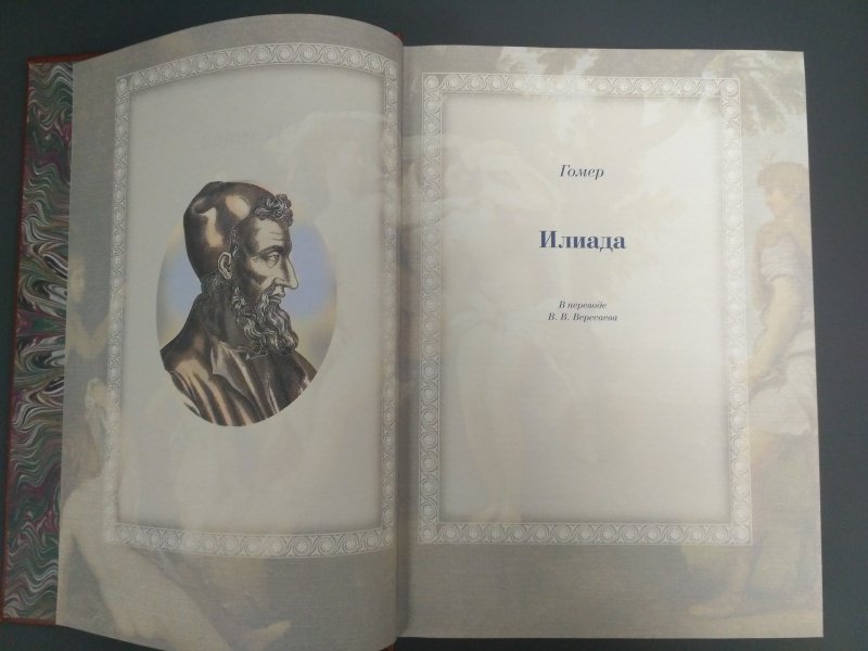 ОписаниеДве большие эпические поэмы Гомера - "Илиада" и "Одиссея" - не только древнейшие, но и великолепнейшие произведения греческой литературы; они служат для всех времен превосходнейшим образцом эпоса, - образцом, с которым не сравнялось еще ни одно литературное произведение в мире. Уже во времена классической эпохи Древней Греции Гомер считался классиком и прародителем литературы. Система образования была построена на изучении поэм Гомера. Творчество Гомера было очень популярно в Древней Греции. Около половины всех найденных папирусных древнегреческих свитков являются отрывками из разных произведений поэта. Еще в Византии Гомера читали и тщательно изучали. До настоящего времени сохранились десятки полных византийских рукописей гомеровских поэм, что беспрецедентно для произведений античной литературы. Кроме того, византийские ученые переписывали, компилировали и создавали схолии и комментарии к Гомеру. "Илиада" отражает представления о человеке "героического периода". Главное действующее лицо в "Илиаде" - Ахиллес -является истинно национальным, поэтически возвышенным, настоящим представителем древнегреческой народной жизни: Ахиллес - молодой, великодушный и пылкий герой, характер его раскрывается не описаниями автора, а речами, произносимыми им самим. Издание проиллюстрировано множеством сюжетных рисунков, великолепно оформлено. В переводе известного русского писателя В. Вересаева оно доставит вам великое удовольствие прикоснуться к классической литературе и истории.СвернутьДве большие эпические поэмы Гомера - "Илиада" и "Одиссея" - не только древнейшие, но и великолепнейшие произведения греческой литературы; они служат для всех времен превосходнейшим образцом эпоса, - образцом, с которым не сравнялось еще ни одно литературное произведение в мире. Уже во времена классической эпохи Древней Греции Гомер считался классиком и прародителем литературы. Система образования была построена на изучении поэм Гомера. Творчество Гомера было очень популярно в Древней Греции. Около половины всех найденных папирусных древнегреческих свитков являются отрывками из разных произведений поэта. Еще в Византии Гомера читали и тщательно изучали. До настоящего времени сохранились десятки полных византийских рукописей гомеровских поэм, что беспрецедентно для произведений античной литературы. Кроме того, византийские ученые переписывали, компилировали и создавали схолии и комментарии к Гомеру. "Илиада" отражает представления о человеке "героического периода". Главное действующее лицо в "Илиаде" - Ахиллес -является истинно национальным, поэтически возвышенным, настоящим представителем древнегреческой народной жизни: Ахиллес - молодой, великодушный и пылкий герой, характер его раскрывается не описаниями автора, а речами, произносимыми им самим. Издание проиллюстрировано множеством сюжетных рисунков, великолепно оформлено. В переводе известного русского писателя В. Вересаева оно доставит вам великое удовольствие прикоснуться к классической литературе и истории.СвернутьСвернуть