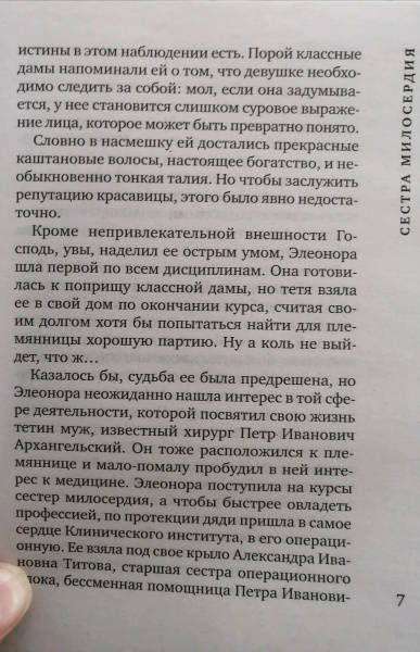 СвернутьДля того, чтобы обрести счастливую семью, недостаточно быть княжной – в этом Элеонора Львова успела убедиться в стенах Смольного института. Еще нужно быть красивой и богатой, чем эта серьезная и умная девушка похвастаться не может. А потому, не дожидаясь выпускного бала, она бросает Смольный и становится медицинской сестрой. На ее счету тысячи спасенных жизней. Но вот устроить свою жизнь у Элеоноры возможности нет – потому что она безответно влюблена в доктора Воинова, который идет служить в Красную Армию. А что может быть преступнее в глазах девушки "из благородных"?..Роман «Сестра милосердия» вошел в новую серию «Зимние романы», где собраны запоминающиеся истории любимых авторов, таких как Татьяна Алюшина, Олег Рой,