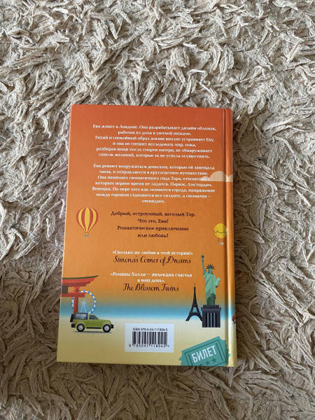 ОписаниеЕва живет в Лондоне. Она разрабатывает дизайн обложек, работая из дома в уютной пижаме. Тихий и спокойный образ жизни вполне устраивает Еву, и она не спешит исследовать мир, пока, разбирая вещи после смерти матери, не обнаруживает список желаний, которые та не успела осуществить. Ева решает вооружиться деньгами, которые ей завещала мама, и отправляется в кругосветное путешествие.Она нанимает симпатичного гида Тора, отношения с которым первое время не ладятся. Париж, Амстердам, Венеция. По мере того как меняются города, напряжение между героями становится все сильнее, а симпатия – очевиднее. Добрый, остроумный, веселый Тор. Что это, Ева? Романтическое приключение или любовь?Что может быть лучше искренней истории любви? Только история искренний любви, разворачивающая на фоне удивительных, неповторимых пейзажей, национальный