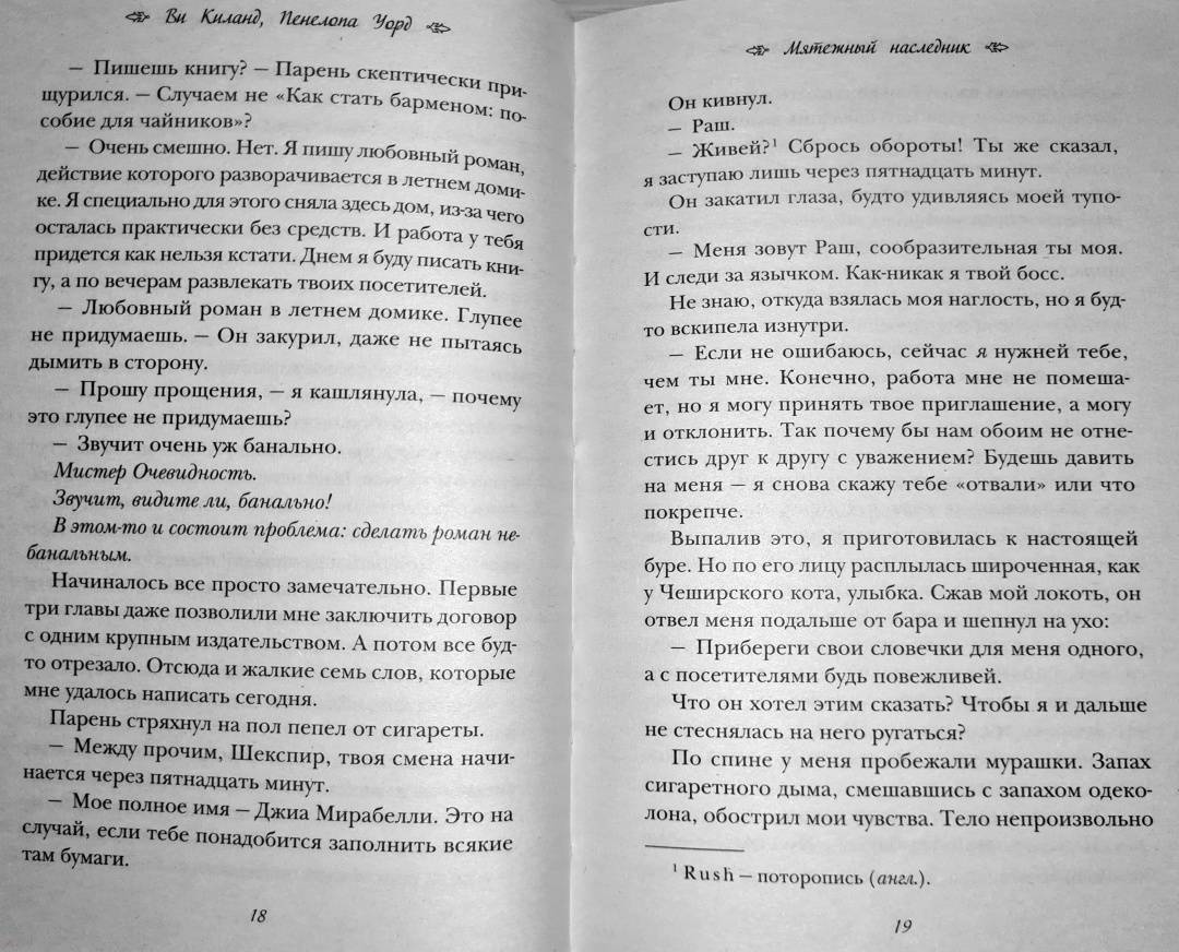 ОписаниеДжиа мечтает стать писателем. Она переезжает в престижный пляжный район Нью-Йорка, чтобы в приятной обстановке написать книгу. Ей удается устроиться на подработку в престижном местном баре. Все бы хорошо, но только хозяин бара – Раш – сразу производит впечатление ну очень плохого парня, а Джиа, на свою беду, неслабо с ним поцапалась при первой встрече. Надо как-то исправить ситуацию. С такими, как Раш, нельзя быть в ссоре. Вот только все ее попытки лишь усугубляют ситуацию. Ее новый босс – ее прекрасный кошмар. Неужто война? Ну что ж, Джиа готова.Джиа мечтает стать писателем. Она переезжает в престижный пляжный район Нью-Йорка, чтобы в приятной обстановке написать книгу. Ей удается устроиться на подработку в престижном местном баре. Все бы хорошо, но только хозяин бара – Раш – сразу производит впечатление ну очень плохого парня, а Джиа, на свою беду, неслабо с ним поцапалась при первой встрече. Надо как-то исправить ситуацию. С такими, как Раш, нельзя быть в ссоре. Вот только все ее попытки лишь усугубляют ситуацию. Ее новый босс – ее прекрасный кошмар. Неужто война? Ну что ж, Джиа готова.