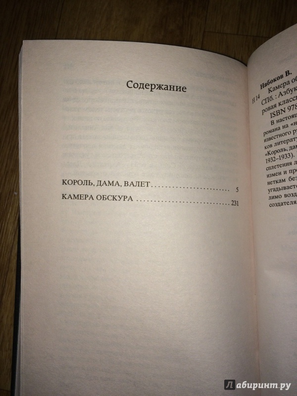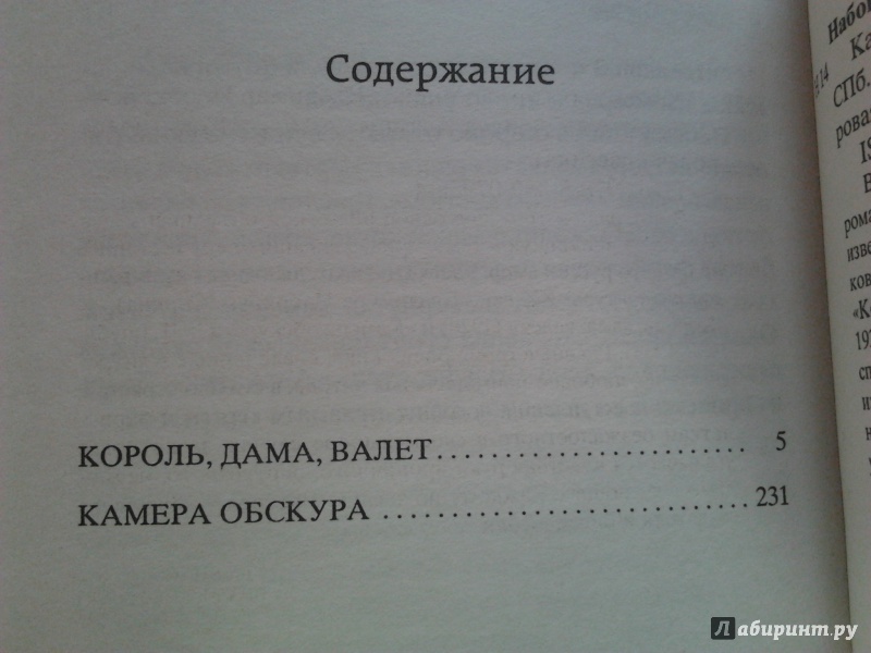 ОписаниеВ настоящем томе под одной обложкой объединены два романа на "немецкую" тему, принадлежащих перу всемирно известного русско-американского писателя, одного из классиков литературы ХХ века Владимира Набокова (Сирина), - "Король, дама, валет" (1928) и "Камера обскура" (1931, опубл. 1932-1933). Главные герои обеих книг, вовлеченные в хитросплетения любовно-криминальных интриг, в стихию страстей, измен и преступлений, подобны игральным картам и марионеткам безжалостного в своем выборе случая, за которым угадывается властная рука ироничного, виртуозного, неумолимо воздающего каждому по заслугам автора - будущего создателя "Дара", "Лолиты" и "Ады".В настоящем томе под одной обложкой объединены два романа на "немецкую" тему, принадлежащих перу всемирно известного русско-американского писателя, одного из классиков литературы ХХ века Владимира Набокова (Сирина), - "Король, дама, валет" (1928) и "Камера обскура" (1931, опубл. 1932-1933). Главные герои обеих книг, вовлеченные в хитросплетения любовно-криминальных интриг, в стихию страстей, измен и преступлений, подобны игральным картам и марионеткам безжалостного в своем выборе случая, за которым угадывается властная рука ироничного, виртуозного, неумолимо воздающего каждому по заслугам автора - будущего создателя "Дара", "Лолиты" и "Ады".