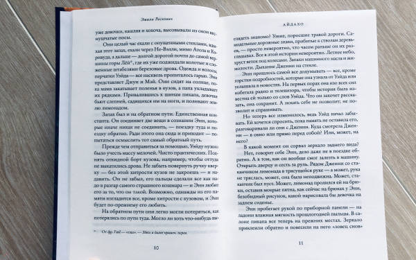 ОписаниеМощный дебютный роман о любви и прощении, о памяти и беспамятстве. Энн и Уэйд ведут герметичную жизнь в суровых условиях Северного Айдахо. Их связывает не только любовь, но и трагедия, разрушившая первую семью Уэйда. А также память, которая постепенно покидает Уэйда. Энн пытается собрать ее крупицы, осколки чужой и загадочной драмы. Поэтично написанная история открывается с разных ракурсов - Энн, Уэйда и Дженни, которая уже много лет находится в тюрьме. Постепенно Энн реконструирует то давнее событие, трагичное и таинственное, сломавшее и Уэйда, и Дженни. В диком эмоциональном ландшафте, сохранившем прошлое в памяти Уэйда, Энн должна в одиночку понять семью, которую она никогда не знала. Эта книга о памяти, о забвении, о его преодолении через безусловную любовь и самоотверженность. Ее чтение подобно блужданию в завораживающих и пугающих пейзажах Айдахо. В 2019 году роман получил одну из самых престижных литературных премий - Дублинскую премию.Мощный дебютный роман о любви и прощении, о памяти и беспамятстве. Энн и Уэйд ведут герметичную жизнь в суровых условиях Северного Айдахо. Их связывает не только любовь, но и трагедия, разрушившая первую семью Уэйда. А также память, которая постепенно покидает Уэйда. Энн пытается собрать ее крупицы, осколки чужой и загадочной драмы. Поэтично написанная история открывается с разных ракурсов - Энн, Уэйда и Дженни, которая уже много лет находится в тюрьме. Постепенно Энн реконструирует то давнее событие, трагичное и таинственное, сломавшее и Уэйда, и Дженни. В диком эмоциональном ландшафте, сохранившем прошлое в памяти Уэйда, Энн должна в одиночку понять семью, которую она никогда не знала. Эта книга о памяти, о забвении, о его преодолении через безусловную любовь и самоотверженность. Ее чтение подобно блужданию в завораживающих и пугающих пейзажах Айдахо. В 2019 году роман получил одну из самых престижных литературных премий - Дублинскую премию.