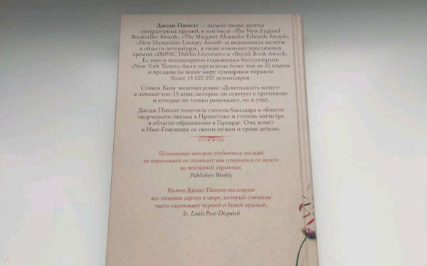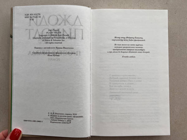 Объем, стр. 544 ISBN 978-5-389-15963-1 Автор Пиколт Джоди, Иванченко Ирина Переводчик Иванченко Ирина Серия Джоди Пиколт Язык Русский Минимальный возраст 16+ Год издания книги 2019 Тип обложки Твердый переплет Иллюстрации Без иллюстраций Вес, г 494г Размеры 205х132х26 мм - Отзывы