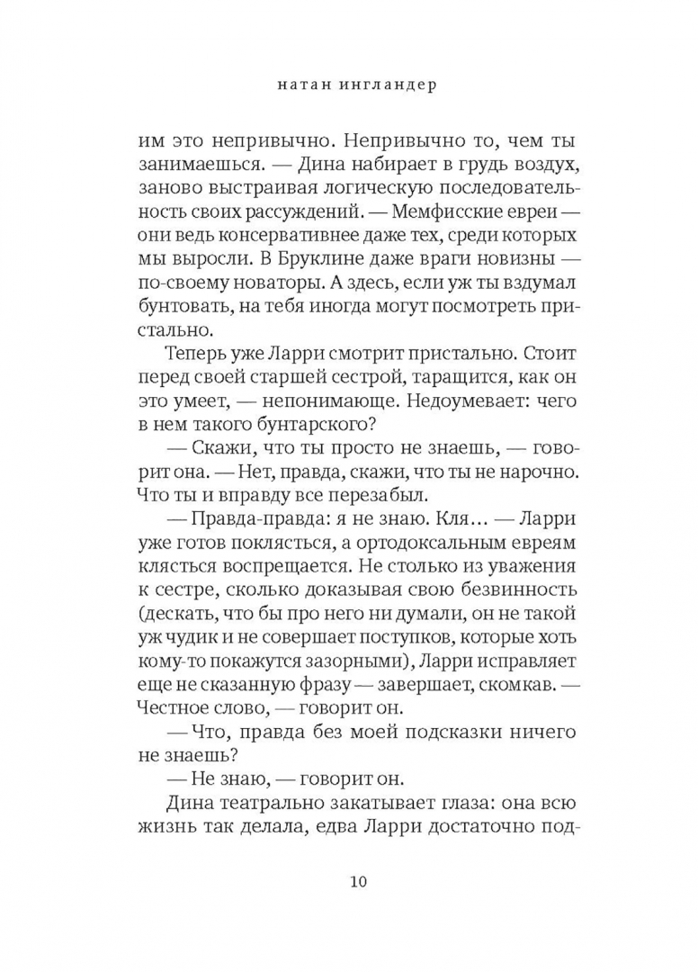 ОписаниеНовый роман известного американского прозаика Натана Ингландера (род. 1970) — острая и ироничная история о метаниях между современной реальностью и заветами предков. После смерти отца герой принимает прагматичное решение — воспользоваться услугами специального сервиса: чтение заупокойной молитвы по усопшему. Однако переложив на других эту обременительную обязанность, он оказывается в положении библейского Исава, что продал первородство за чечевичную похлебку. И теперь ни любовь к семье, ни здравый смысл, ни нужда — ничто не остановит его в попытке обрести утраченное, а заодно и перевернуть вверх дном жизнь прочих персонажей.Новый роман известного американского прозаика Натана Ингландера (род. 1970) — острая и ироничная история о метаниях между современной реальностью и заветами предков. После смерти отца герой принимает прагматичное решение — воспользоваться услугами специального сервиса: чтение заупокойной молитвы по усопшему. Однако переложив на других эту обременительную обязанность, он оказывается в положении библейского Исава, что продал первородство за чечевичную похлебку. И теперь ни любовь к семье, ни здравый смысл, ни нужда — ничто не остановит его в попытке обрести утраченное, а заодно и перевернуть вверх дном жизнь прочих персонажей.