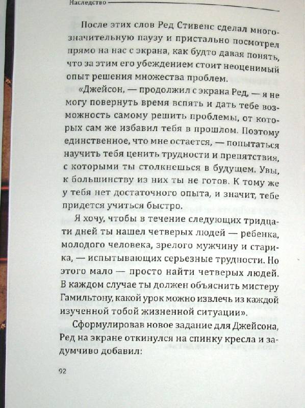 ОписаниеЧто может быть важнее наследства в 10 000 000 000 долларов? Это предстоит узнать Джейсону Стивенсу...Получив известие о кончине своего двоюродного деда, Джейсон сгорает от нетерпения. Другие наследники один за другим получают свою долю многомиллиардного состояния. Но когда приходит черед Джейсона, ему сообщают, что для получения наследства нужно пройти двенадцать не совсем обычных испытаний. Причем что именно он получит в результате, пока не ясно. Ставки высоки, но и приз может оказаться весомым!Что может быть важнее наследства в 10 000 000 000 долларов? Это предстоит узнать Джейсону Стивенсу...Получив известие о кончине своего двоюродного деда, Джейсон сгорает от нетерпения. Другие наследники один за другим получают свою долю многомиллиардного состояния. Но когда приходит черед Джейсона, ему сообщают, что для получения наследства нужно пройти двенадцать не совсем обычных испытаний. Причем что именно он получит в результате, пока не ясно. Ставки высоки, но и приз может оказаться весомым!