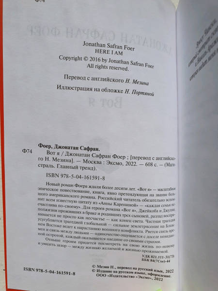 Объем, стр. 608 ISBN 978-5-04-161591-8 Автор Фоер Джонатан Сафран, Мезин Николай Владимирович Переводчик Мезин Николай Владимирович Серия Магистраль. Главный тренд Минимальный возраст 18+ Год издания книги 2022 Тип обложки Мягкий переплет Иллюстрации Без иллюстраций Вес, г 510г Размеры 205х130х28 мм - Отзывы