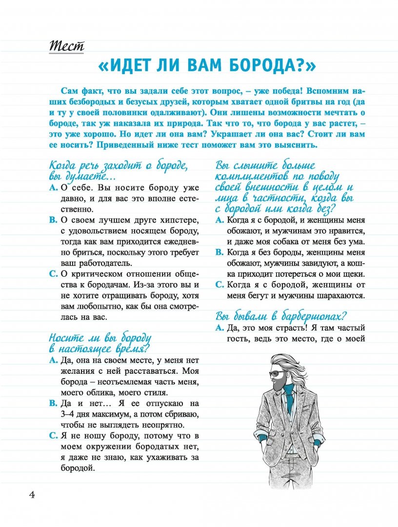 ОписаниеПо-настоящему счастливы и успешны лишь те немногие посвященные, кто знает правила стиля. Добро пожаловать в сообщество тех, кто в тренде, мятежных бородачей, хипстеров и усатых денди. Наш девиз: за бородатую нацию! Признак, по которому нас узнают, - ухоженная, аккуратно подстриженная борода. Книга раскроет вам все тонкости, рецепты и секреты идеальной (и при этом модной!) бороды.Для широкого круга читателей.По-настоящему счастливы и успешны лишь те немногие посвященные, кто знает правила стиля. Добро пожаловать в сообщество тех, кто в тренде, мятежных бородачей, хипстеров и усатых денди. Наш девиз: за бородатую нацию! Признак, по которому нас узнают, - ухоженная, аккуратно подстриженная борода. Книга раскроет вам все тонкости, рецепты и секреты идеальной (и при этом модной!) бороды.Для широкого круга читателей.