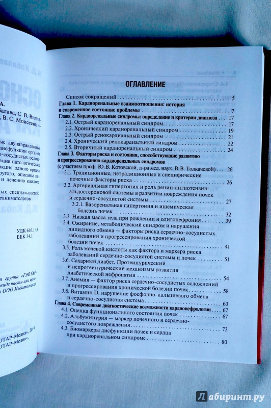 ОписаниеВ книге изложены современные взгляды на сложные двунаправленные кардиоренальные отношения, возникающие в условиях дисфункции органов и ведущие к значительному повышению риска сердечно-сосудистых осложнений и смерти. Представлены определение и классификация патологических процессов, при которых острая или хроническая дисфункция одного органа приводит к острой или хронической недостаточности другого, описаны патофизиологические механизмы, подходы к диагностике и лечению каждого из клинических вариантов кардиоренальных синдромов.Предназначена для широкого круга врачей различных специальностей: терапевтов, кардиологов, эндокринологов, нефрологов и реаниматологов.В книге изложены современные взгляды на сложные двунаправленные кардиоренальные отношения, возникающие в условиях дисфункции органов и ведущие к значительному повышению риска сердечно-сосудистых осложнений и смерти. Представлены определение и классификация патологических процессов, при которых острая или хроническая дисфункция одного органа приводит к острой или хронической недостаточности другого, описаны патофизиологические механизмы, подходы к диагностике и лечению каждого из клинических вариантов кардиоренальных синдромов.Предназначена для широкого круга врачей различных специальностей: терапевтов, кардиологов, эндокринологов, нефрологов и реаниматологов.