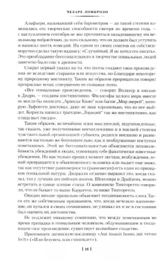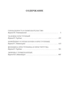 ОписаниеЧезаре Ломброзо – выдающийся итальянский психиатр и криминалист, посвятивший жизнь изучению природы безумия и психологии преступника. Он первым выдвинул идею о преступности, как врожденном свойстве характера, обратив внимание криминалистов не на совершенное преступление, но на внутренний мир его совершившего. Он разработал особую формулу, по которой, на основе измерения черепа и других частей тела, можно определить степень склонности человека к преступному деянию; классифицировал разнообразные проявления асоциального поведения у женщин; исследовал связи между гениальностью и психическими аномалиями на примерах биографий выдающихся личностей. Несмотря на безапелляционность суждений и порой фантастические выводы, труды Ломброзо читаются сегодня с большим интересом. В этих работах читатель может познакомиться с многочисленными криминальными историями прошлого, неожиданными статистическими выкладками, любопытными фактами из жизни знаменитых людей, и, наконец, погрузиться в мир клинической и психоаналитической мысли девятнадцатого столетия.СвернутьЧезаре Ломброзо – выдающийся итальянский психиатр и криминалист, посвятивший жизнь изучению природы безумия и психологии преступника. Он первым выдвинул идею о преступности, как врожденном свойстве характера, обратив внимание криминалистов не на совершенное преступление, но на внутренний мир его совершившего. Он разработал особую формулу, по которой, на основе измерения черепа и других частей тела, можно определить степень склонности человека к преступному деянию; классифицировал разнообразные проявления асоциального поведения у женщин; исследовал связи между гениальностью и психическими аномалиями на примерах биографий выдающихся личностей. Несмотря на безапелляционность суждений и порой фантастические выводы, труды Ломброзо читаются сегодня с большим интересом. В этих работах читатель может познакомиться с многочисленными криминальными историями прошлого, неожиданными статистическими выкладками, любопытными фактами из жизни знаменитых людей, и, наконец, погрузиться в мир клинической и психоаналитической мысли девятнадцатого столетия.СвернутьСвернуть
