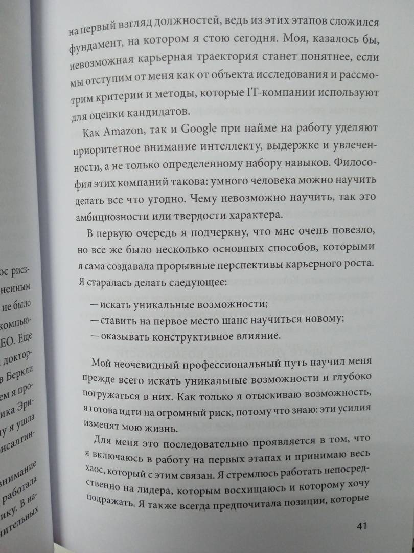 ОписаниеСтратегия развития карьеры от Энн Хайeтт, которую она использовала, работая с мировыми лидерами - Эриком Шмидтом из Google, Джеффом Безосом из Amazon и Мариссой Майер из Yahoo!.Вам кажется, что вы застряли в своем развитии на нынешней работе и никак не можете получить признание в виде продвижения по службе или повышения зарплаты? Или вы только начинаете свой карьерный путь и размышляете, какая работа может стать трамплином к карьере мечты? Возможно, вы руководитель и ищете наиболее эффективные модели лидерства, чтобы привлечь, мотивировать и развивать своих сотрудников? Эта книга для вас. Энн Хайeтт делится повседневными лайфхаками и долгосрочными стратегиями, которые помогали ей на протяжении 15 лет работать с первыми лицами в мировых технологических гигантах.Благодаря этому руководству вы узнаете, как:- получить признание за работу, которую вы выполняете;- построить успешную карьеру с нуля;- обрести уверенность, необходимую, чтобы проявить себя;- составить эффективный план для управления своим профессиональным путем.Книга поможет сделать ставку на себя и построить жизнь, полную приключений, радости и успеха.Предисловие написал председатель совета директоров компании Google Эрик Шмидт.Для кого эта книгаДля тех, кто стремится построить успешную карьеру и получить признание за свою работу.Для тех, кому необходимо обрести уверенность в своих силах и проявить себя.Для всех, кто готов взять свой профессиональный путь в свои руки.СвернутьСтратегия развития карьеры от Энн Хайeтт, которую она использовала, работая с мировыми лидерами - Эриком Шмидтом из Google, Джеффом Безосом из Amazon и Мариссой Майер из Yahoo!.Вам кажется, что вы застряли в своем развитии на нынешней работе и никак не можете получить признание в виде продвижения по службе или повышения зарплаты? Или вы только начинаете свой карьерный путь и размышляете, какая работа может стать трамплином к карьере мечты? Возможно, вы руководитель и ищете наиболее эффективные модели лидерства, чтобы привлечь, мотивировать и развивать своих сотрудников? Эта книга для вас. Энн Хайeтт делится повседневными лайфхаками и долгосрочными стратегиями, которые помогали ей на протяжении 15 лет работать с первыми лицами в мировых технологических гигантах.Благодаря этому руководству вы узнаете, как:- получить признание за работу, которую вы выполняете;- построить успешную карьеру с нуля;- обрести уверенность, необходимую, чтобы проявить себя;- составить эффективный план для управления своим профессиональным путем.Книга поможет сделать ставку на себя и построить жизнь, полную приключений, радости и успеха.Предисловие написал председатель совета директоров компании Google Эрик Шмидт.Для кого эта книгаДля тех, кто стремится построить успешную карьеру и получить признание за свою работу.Для тех, кому необходимо обрести уверенность в своих силах и проявить себя.Для всех, кто готов взять свой профессиональный путь в свои руки.СвернутьСвернуть