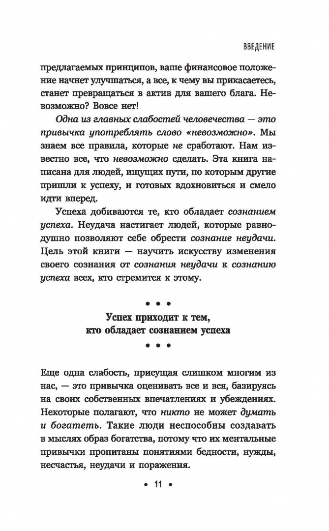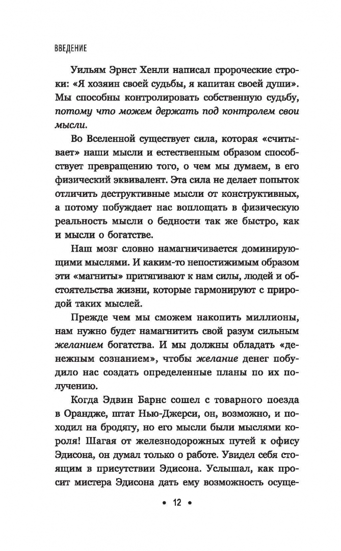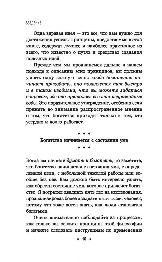 ОписаниеЧеловек может достичь всего, что способен постичь и принять разумом.В этом высказывании выведена формула успеха — настолько простая, что ее может применить любой, и в то же время настолько сложная, что лишь единицы из нас когда-либо полностью ее реализуют. Именно на ней построена философия успеха, объясняющая, каким образом человеческие желания могут воплотиться в материальную реальность. Именно благодаря ей самые богатые люди в мире — богатые в самых разных смыслах: деньгами, отношениями, властью, душевным спокойствием и социальным статусом, — выстраивали и поддерживали свое благосостояние. Именно она лежит в основе науки успеха — философии достижений, которая помогла покончить с Великой депрессией и с тех пор создала больше миллионеров, культовых личностей и лидеров мнений, чем любая другая.Книга представляет собой краткое изложение оригинального текста шедевра Наполеона Хилла 1937 года. В ней собраны ключевые принципы, рекомендации и примеры, чтобы современный профессионал тоже мог извлечь пользу из актуальной во все времена мудрости Хилла, открыв для себя путь к стремительному личностному росту и придав импульс воплощению своей мечты.СвернутьЧеловек может достичь всего, что способен постичь и принять разумом.В этом высказывании выведена формула успеха — настолько простая, что ее может применить любой, и в то же время настолько сложная, что лишь единицы из нас когда-либо полностью ее реализуют. Именно на ней построена философия успеха, объясняющая, каким образом человеческие желания могут воплотиться в материальную реальность. Именно благодаря ей самые богатые люди в мире — богатые в самых разных смыслах: деньгами, отношениями, властью, душевным спокойствием и социальным статусом, — выстраивали и поддерживали свое благосостояние. Именно она лежит в основе науки успеха — философии достижений, которая помогла покончить с Великой депрессией и с тех пор создала больше миллионеров, культовых личностей и лидеров мнений, чем любая другая.Книга представляет собой краткое изложение оригинального текста шедевра Наполеона Хилла 1937 года. В ней собраны ключевые принципы, рекомендации и примеры, чтобы современный профессионал тоже мог извлечь пользу из актуальной во все времена мудрости Хилла, открыв для себя путь к стремительному личностному росту и придав импульс воплощению своей мечты.СвернутьСвернуть