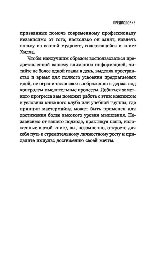 ОписаниеЧеловек может достичь всего, что способен постичь и принять разумом.В этом высказывании выведена формула успеха - настолько простая, что ее может применить любой, и в то же время настолько сложная, что лишь единицы из нас когда-либо полностью ее реализуют. Именно на ней построена философия успеха, объясняющая, каким образом человеческие желания могут воплотиться в материальную реальность. Именно благодаря ей самые богатые люди в мире - богатые в самых разных смыслах: деньгами, отношениями, властью, душевным спокойствием и социальным статусом, - выстраивали и поддерживали свое благосостояние. Именно она лежит в основе науки успеха - философии достижений, которая помогла покончить с Великой депрессией и с тех пор создала больше миллионеров, культовых личностей и лидеров мнений, чем любая другая.Книга представляет собой краткое изложение оригинального текста шедевра Наполеона Хилла 1937 года. В ней собраны ключевые принципы, рекомендации и примеры, чтобы современный профессионал тоже мог извлечь пользу из актуальной во все времена мудрости Хилла, открыв для себя путь к стремительному личностному росту и придав импульс воплощению своей мечты.СвернутьЧеловек может достичь всего, что способен постичь и принять разумом.В этом высказывании выведена формула успеха - настолько простая, что ее может применить любой, и в то же время настолько сложная, что лишь единицы из нас когда-либо полностью ее реализуют. Именно на ней построена философия успеха, объясняющая, каким образом человеческие желания могут воплотиться в материальную реальность. Именно благодаря ей самые богатые люди в мире - богатые в самых разных смыслах: деньгами, отношениями, властью, душевным спокойствием и социальным статусом, - выстраивали и поддерживали свое благосостояние. Именно она лежит в основе науки успеха - философии достижений, которая помогла покончить с Великой депрессией и с тех пор создала больше миллионеров, культовых личностей и лидеров мнений, чем любая другая.Книга представляет собой краткое изложение оригинального текста шедевра Наполеона Хилла 1937 года. В ней собраны ключевые принципы, рекомендации и примеры, чтобы современный профессионал тоже мог извлечь пользу из актуальной во все времена мудрости Хилла, открыв для себя путь к стремительному личностному росту и придав импульс воплощению своей мечты.СвернутьСвернуть