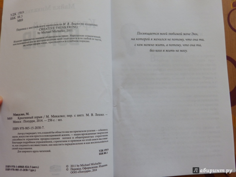 Объем, стр. 256 ISBN 978-985-15-2038-7 Автор Микалко Майкл, Лешко М. В. Язык Русский Минимальный возраст 16+ Год издания книги 2014 Тип обложки Мягкий переплет Иллюстрации Черно-белые Вес, г 222г Размеры 200х138х11 мм - Отзывы