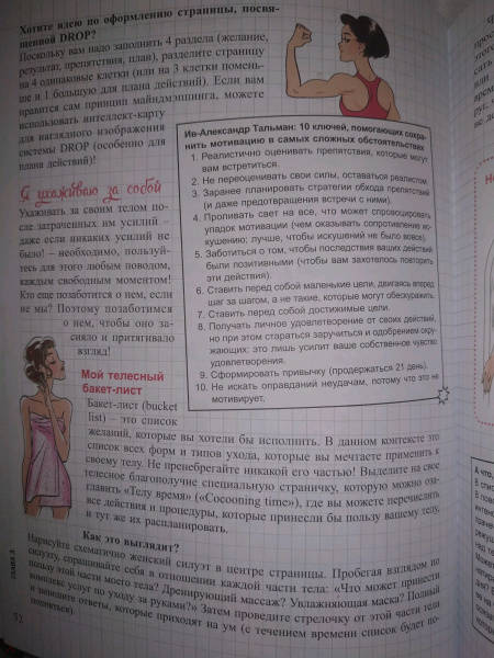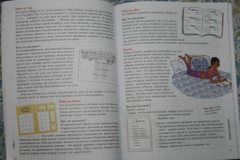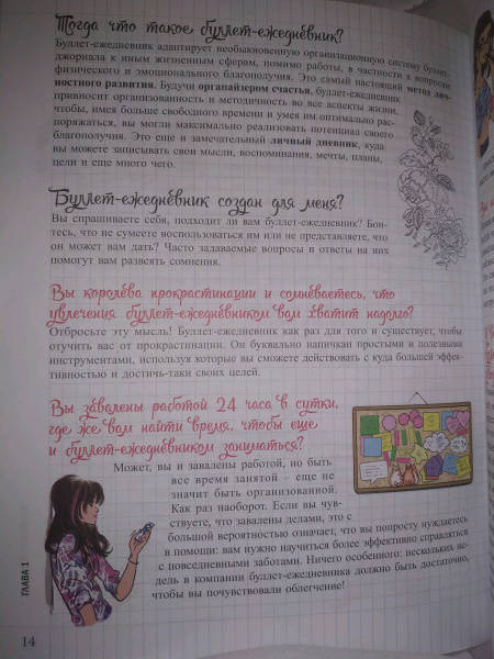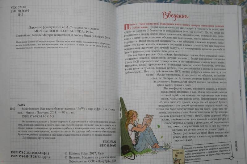 ОписаниеУдобный органайзер и личный дневник два в одном? Такое возможно!Если вы в тренде, то наверняка уже слышали о буллет-журнале. Объединяющий в себе возможности органайзера, дневника, планнера и много чего еще, буллет-журнал позволит вам не забивать голову мелочами, поможет оптимально организовать работу и планировать свои дни так, чтобы у вас оставалось достаточно времени на себя. Буллет-журнал содержит план осуществления каждого из ваших желаний!Планируйте свою жизнь, свои занятия, свои проекты и все возникающие в голове мысли в одной тетради.Снимайте стресс, занимайтесь медитацией и реализуйте свои мечты на специально отведенных для этого страницах.Используйте списки, трекеры и другие способы организации, чтобы сделать жизнь проще и комфортнее.Книга поможет вам:- Открыть для себя наилучший способ организации жизни, основанный на принципе списков дел и миграции задач. Это простой, практичный и гибкий метод, позволяющий максимально эффективно решать все вопросы.- Организовать свои цели, мысли, проекты. Никогда не позволяйте себе забыть ни одну мысль, ни одно желание, ни одну встречу. Теперь вы избавитесь от необходимости держать всю информацию в голове и помнить обо всем на свете.- Больше заботиться о себе. Уделяйте больше времени себе, любимой (в буллет-журнале для этого отведены специальные страницы). Правильно питайтесь, занимайтесь спортом, самосовершенствуйтесь. Исполните наконец то, что давно себе обещали.- Украсить свой буллет-журнал каллиграфически написанными цитатами, орнаментами, дудлами, творческой компоновкой страниц. И красиво, и мотивирует.- Отмечать галочками уже выполненные пункты в вашем плане и продолжать двигаться к целям, которые еще не достигнуты. Это же так приятно!Об автореPoWa - популярная французская блогерша, специализирующаяся на личностном саморазвитии, охотница за хорошими идеями, которые привносят больше счастья в нашу повседневную жизнь. Делится своими методами организованности, советами и находками в блоге powapowa.СвернутьУдобный органайзер и личный дневник два в одном? Такое возможно!Если вы в тренде, то наверняка уже слышали о буллет-журнале. Объединяющий в себе возможности органайзера, дневника, планнера и много чего еще, буллет-журнал позволит вам не забивать голову мелочами, поможет оптимально организовать работу и планировать свои дни так, чтобы у вас оставалось достаточно времени на себя. Буллет-журнал содержит план осуществления каждого из ваших желаний!Планируйте свою жизнь, свои занятия, свои проекты и все возникающие в голове мысли в одной тетради.Снимайте стресс, занимайтесь медитацией и реализуйте свои мечты на специально отведенных для этого страницах.Используйте списки, трекеры и другие способы организации, чтобы сделать жизнь проще и комфортнее.Книга поможет вам:- Открыть для себя наилучший способ организации жизни, основанный на принципе списков дел и миграции задач. Это простой, практичный и гибкий метод, позволяющий максимально эффективно решать все вопросы.- Организовать свои цели, мысли, проекты. Никогда не позволяйте себе забыть ни одну мысль, ни одно желание, ни одну встречу. Теперь вы избавитесь от необходимости держать всю информацию в голове и помнить обо всем на свете.- Больше заботиться о себе. Уделяйте больше времени себе, любимой (в буллет-журнале для э