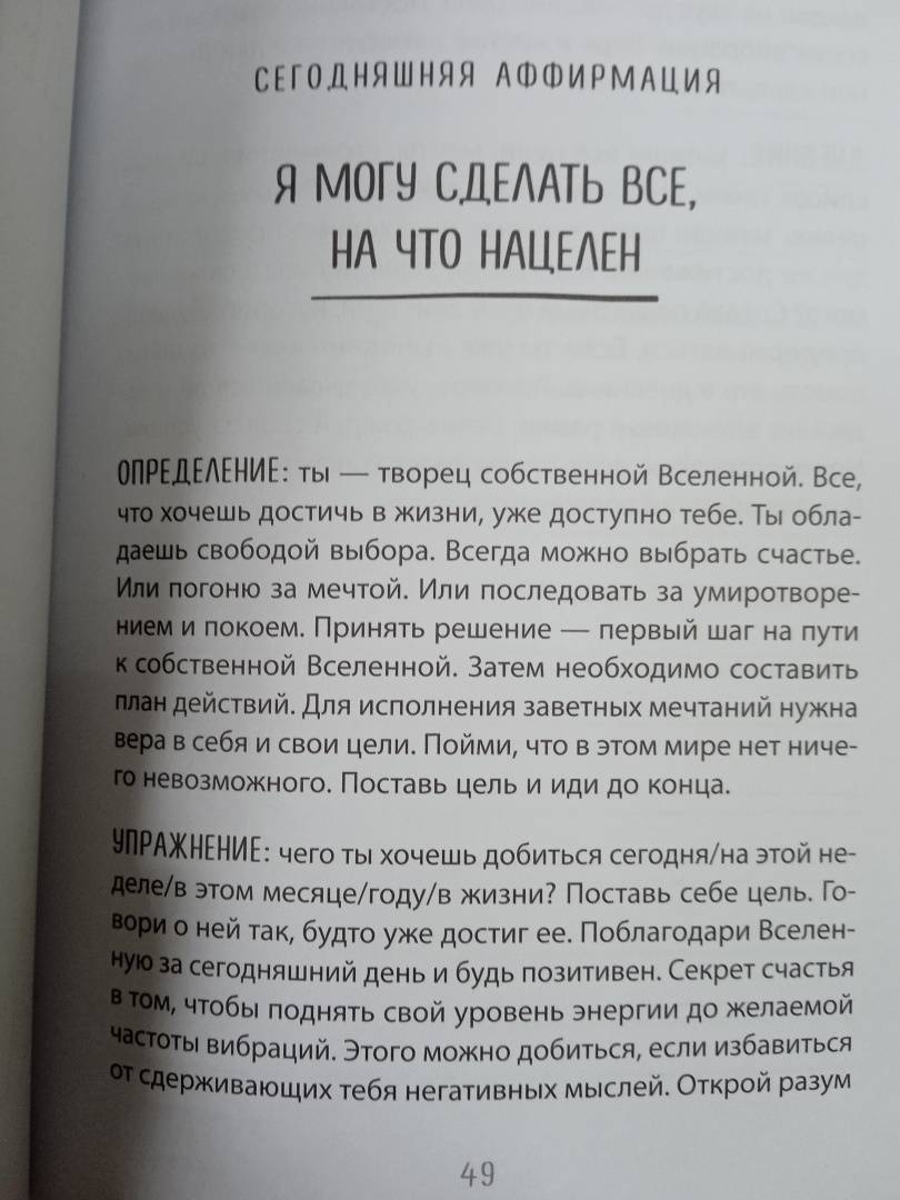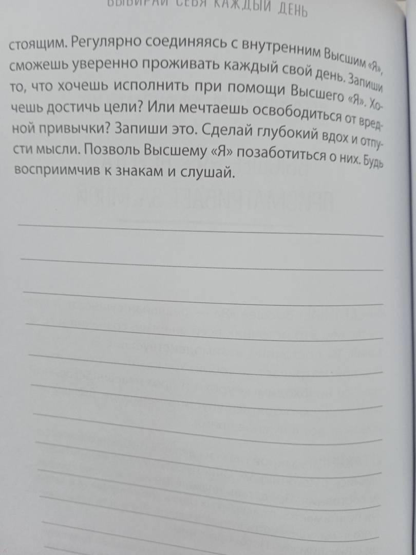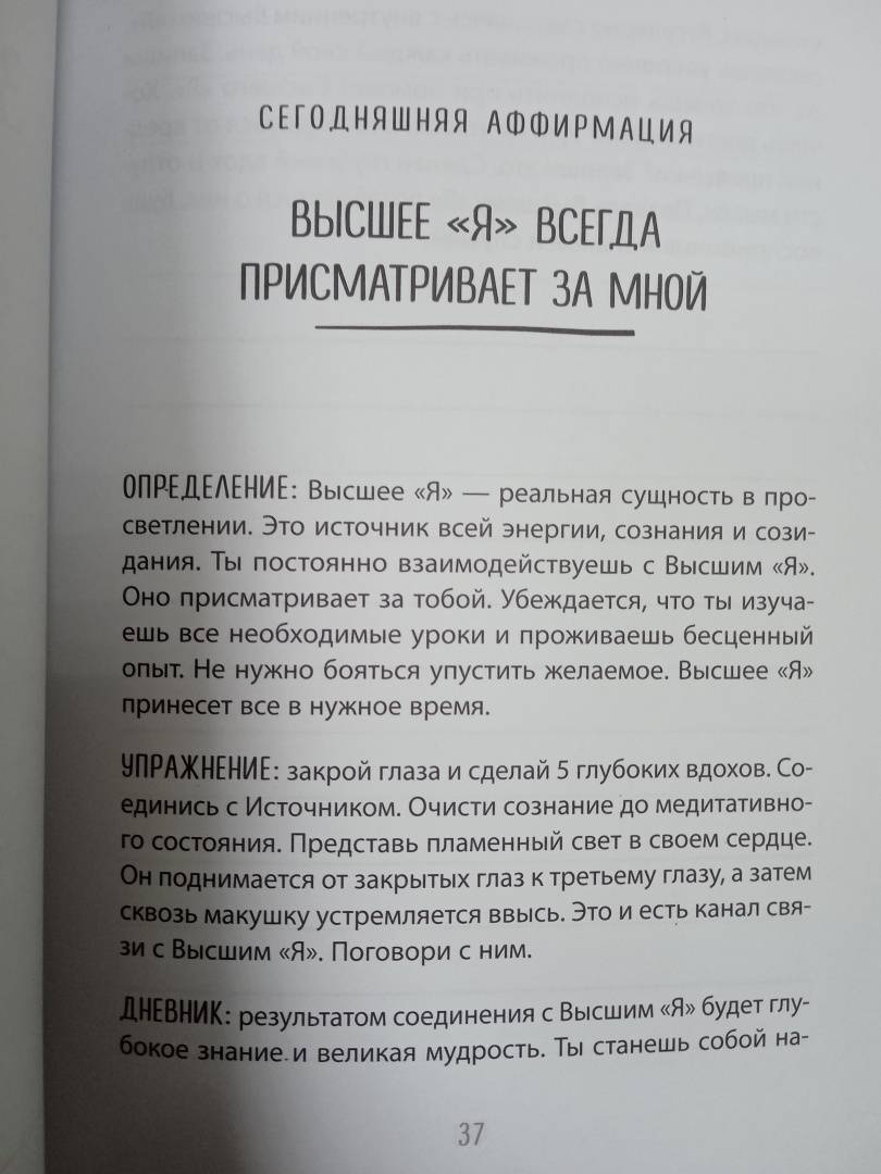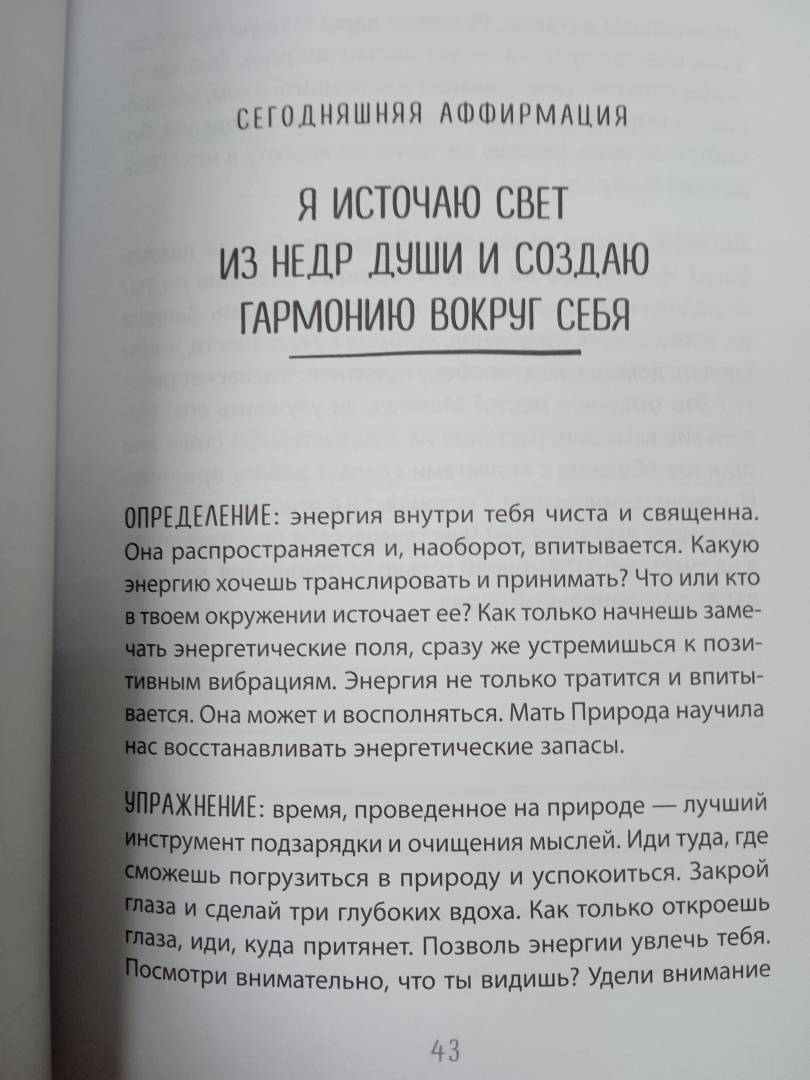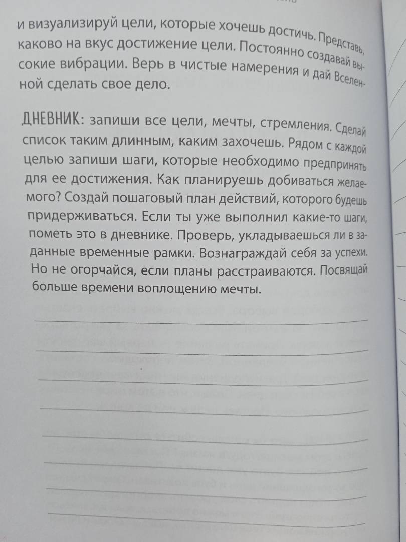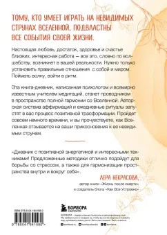ОписаниеТому, кто умеет играть на невидимых струнах Вселенной, подвластны все события своей жизни. Настоящая любовь, достаток, здоровье и счастье близких, интересная работа - все это, словно по волшебству, возникнет в вашей реальности. Нужно только установить правильные отношения с собой и миром. Поймать волну, войти в ритм. Эта книга-дневник, написанная психологом и всемирно известным учителем медитаций, станет проводником в пространство полной гармонии со Вселенной. Авторская система аффирмаций и ежедневные ритуалы запустят в вас процесс позитивной трансформации. Пройдет совсем немного времени, и вы почувствуете, как Вселенная отзывается на ваши прикосновения к ее невидимым струнам. Цитаты: "Укрепи канал связи с внутренним голосом, и ты выйдешь победителем из любой ситуации. Страх принятия неверных решений исчезнет, когда будешь полагаться на внутренние ощущения". "В тебе находятся ответы на все вопросы, которые хочешь задать. Все, что нужно сделать - закрыть глаза и слушать. Это твой мир, твое творение. Тебя окружает Вселенная принятых тобой решений". "Самое мощное слово, которое можно произнести - это "Я". Так важно использовать его осторожно и всегда говорить о себе с любовью и позитивом. Как часто ты делаешь себе комплименты? Хвалишь красивое лицо и тело, доброе сердце и острый ум? Чем чаще мы говорим это, тем сильнее верим в свою исключительность".СвернутьТому, кто умеет играть на невидимых струнах Вселенной, подвластны все события своей жизни. Настоящая любовь, достаток, здоровье и счастье близких, интересная работа - все это, словно по волшебству, возникнет в вашей реальности. Нужно только установить правильные отношения с собой и миром. Поймать волну, войти в ритм. Эта книга-дневник, написанная психологом и всемирно известным учителем медитаций, станет проводником в пространство полной гармонии со Вселенной. Авторская система аффирмаций и ежедневные ритуалы запустят в вас процесс позитивной трансформации. Пройдет совсем немного времени, и вы почувствуете, как Вселенная отзывается на ваши прикосновения к ее невидимым струнам. Цитаты: "Укрепи канал связи с внутренним голосом, и ты выйдешь победителем из любой ситуации. Страх принятия неверных решений исчезнет, когда будешь полагаться на внутренние ощущения". "В тебе находятся ответы на все вопросы, которые хочешь задать. Все, что нужно сделать - закрыть глаза и слушать. Это твой мир, твое творение. Тебя окружает Вселенная принятых тобой решений". "Самое мощное слово, которое можно произнести - это "Я". Так важно использовать его осторожно и всегда говорить о себе с любовью и позитивом. Как часто ты делаешь себе комплименты? Хвалишь красивое лицо и тело, доброе сердце и острый ум? Чем чаще мы говорим это, тем сильнее верим в свою исключительность".СвернутьСвернуть