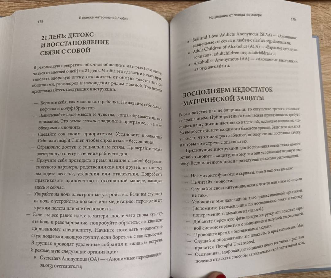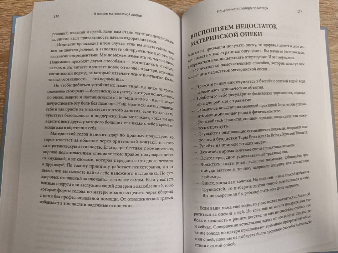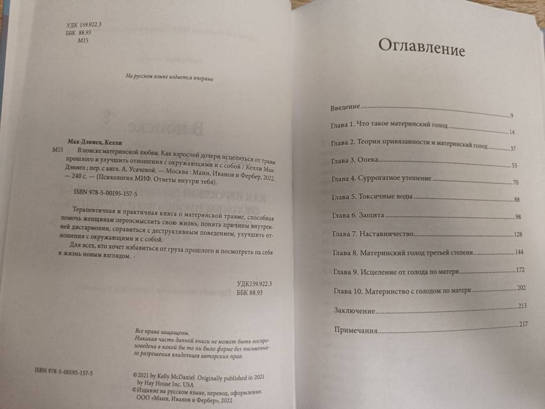 ОписаниеТерапевтичная и практичная книга о материнской травме, которая поможет женщинам переосмыслить свою жизнь, понять причины внутренней дисгармонии, справиться с деструктивным поведением, улучшить отношения с окружающими и с собой.Многие из пациенток консультанта по травмам Келли Мак-Дэниел чувствуют себя в ловушке: деструктивное поведение причиняет им сильную боль, но они не могут остановиться. При этом врачи очень часто ставят ошибочные диагнозы, ориентируясь лишь на внешние проявления и не утруждая себя ответом на вопрос, почему это происходит. Диагнозы, которые приводят только к чувству стыда, но никак не способствуют исправлению ситуации.Для того чтобы реально решить проблемы, необходимо выявить их причины, и они, по мысли Мак-Дэниел, кроются в детстве, а именно в материнском голоде — отсутствии или недостаточности материнской любви.Книга Келли поможет женщинам по-новому взглянуть на свою жизнь, переосмыслить прошлый опыт и наметить пути к лучшему будущему. Это компас, необходимый каждой женщине, чтобы положить конец борьбе с болезненной пустотой и вновь обрести себя. Для формирования здоровых отношений Мак-Дэниел предлагает ряд мощных инструментов: как терапевтическое вмешательство, так и изменения образа жизни.Для кого книгаДля взрослых дочерей, которые ощущают себя недолюбленными мамой в детстве и испытывают трудности с тем, чтобы полюбить себя.Для женщин с болезненным багажом прошлого, которые хотят наметить путь к лучшему будущему.СвернутьТерапевтичная и практичная книга о материнской травме, которая поможет женщинам переосмыслить свою жизнь, понять причины внутренней дисгармонии, справиться с деструктивным поведением, улучшить отношения с окружающими и с собой.Многие из пациенток консультанта по травмам Келли Мак-Дэниел чувствуют себя в ловушке: деструктивное поведение причиняет им сильную боль, но они не могут остановиться. При этом врачи очень часто ставят ошибочные диагнозы, ориентируясь лишь на внешние проявления и не утруждая себя ответом на вопрос, почему это происходит. Диагнозы, которые приводят только к чувству стыда, но никак не способствуют исправлению ситуации.Для того чтобы реально решить проблемы, необходимо выявить их причины, и они, по мысли Мак-Дэниел, кроются в детстве, а именно в материнском голоде — отсутствии или недостаточности материнской любви.Книга Келли поможет женщинам по-новому взглянуть на свою жизнь, переосмыслить прошлый опыт и наметить пути к лучшему будущему. Это компас, необходимый каждой женщине, чтобы положить конец борьбе с болезненной пустотой и вновь обрести себя. Для формирования здоровых отношений Мак-Дэниел предлагает ряд мощных инструментов: как терапевтическое вмешательство, так и изменения образа жизни.Для кого книгаДля взрослых дочерей, которые ощущают себя недолюбленными мамой в детстве и испытывают трудности с тем, чтобы полюбить себя.Для женщин с болезненным багажом прошлого, которые хотят наметить путь к лучшему будущему.СвернутьСвернуть