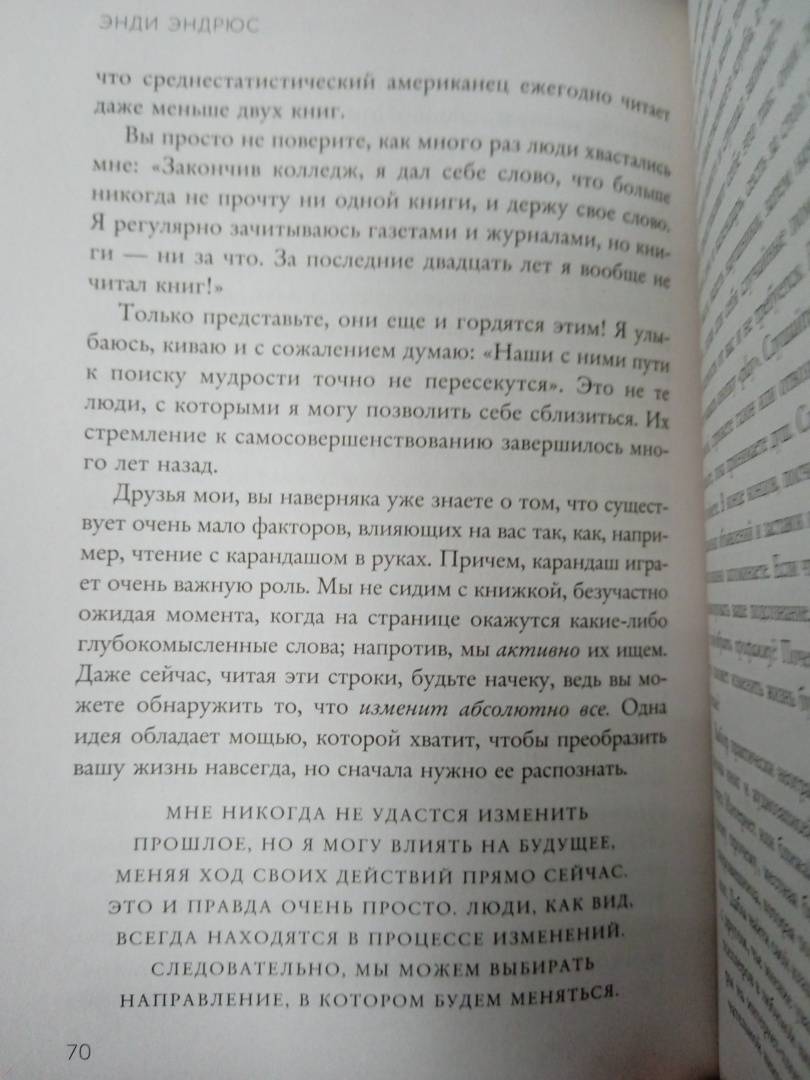ОписаниеЧто отличает обычного человека от необыкновенного? Конечно же, решения, которые он принимает. Энди Эндрюс, один из самых влиятельных спикеров Америки и автор бестселлеров, переведенных на 40 языков мира, проанализировал множество биографий и провел массу интервью с успешными людьми и сформулировал 7 принципов, которые сделают жизнь счастливой и увлекательной. Каждый день принимая одно или несколько из предложенных решений, вы изменитесь навсегда. Эта книга поможет вам: - Найти свое призвание и неотступно следовать ему. - Преодолеть страх неудачи. - Правильно расставить приоритеты. - Стать хозяином своей жизни.Что отличает обычного человека от необыкновенного? Конечно же, решения, которые он принимает. Энди Эндрюс, один из самых влиятельных спикеров Америки и автор бестселлеров, переведенных на 40 языков мира, проанализировал множество биографий и провел массу интервью с успешными людьми и сформулировал 7 принципов, которые сделают жизнь счастливой и увлекательной. Каждый день принимая одно или несколько из предложенных решений, вы изменитесь навсегда. Эта книга поможет вам: - Найти свое призвание и неотступно следовать ему. - Преодолеть страх неудачи. - Правильно расставить приоритеты. - Стать хозяином своей жизни.
