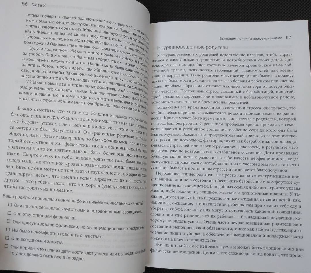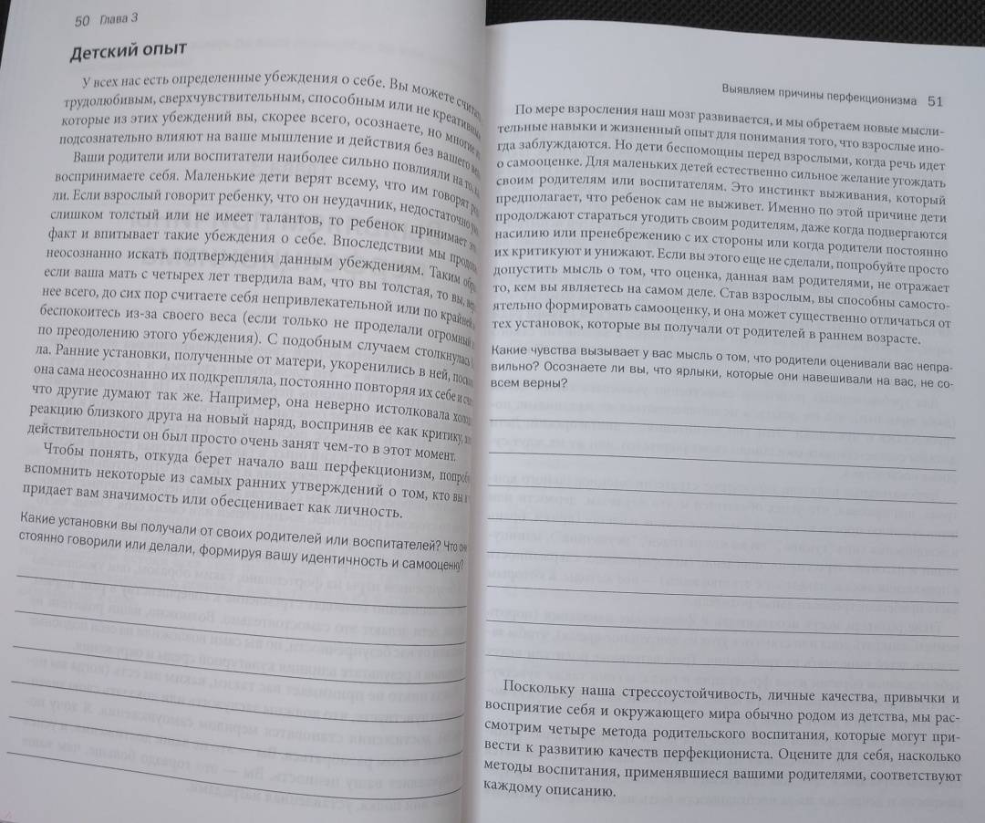 ОписаниеНаучно обоснованный способ избавиться от самокритики и обрести самоуважение!Данная книга поможет вам осознать причину своего перфекционизма и понять, в какой степени стремление к безупречности отравляет вашу жизнь и отношения с близкими. Вместо того чтобы оценивать свои действия и достижения по критериям “идеальности”, вы научитесь снисходительному отношению к себе и другим людям. В конечном итоге вы узнаете, как преодолеть тягу к совершенству и перестать фокусироваться на достижении амбициозных целей. Если вы готовы избавиться от перфекционизма и начать вести более насыщенную жизнь, то книга станет для вас незаменимым помощником.Основные темы книги:как перестать всем угождать;как справиться со стрессом и выгоранием;как преодолеть стремление все контролировать;как покончить с прокрастинацией;как перестать бояться изменений.НЕ ДАЙТЕ ПЕРФЕКЦИОНИЗМУ ИСПОРТИТЬ СЕБЕ ЖИЗНЬ!Замечали ли вы за собой нереалистично высокие требования к себе или другим людям? Знаком ли вам ворчливый голос внутреннего критика, который постоянно зудит, что вы недостаточно хороши несмотря ни на что? Если ответ на один или оба этих вопроса - уверенное "да", то, вероятнее всего, вы перфекционист.Безусловно, в трудолюбии и высоких жизненных стандартах нет ничего страшного, однако потребность в совершенстве может мешать счастью и портить жизнь.Как же найти баланс?Данная книга поможет вам осознать причину своего перфекционизма и понять, в какой степени стремление к безупречности отравляет вашу жизнь и отношения с близкими. Вместо того чтобы оценивать свои действия и достижения по критериям "идеальности", вы научитесь снисходительному отношению к себе и другим людям. В конечном итоге вы узнаете, как преодолеть тягу к совершенству и перестать фокусироваться на достижении амбициозных целей. Если вы готовы избавиться от перфекционизма и начать вести более насыщенную жизнь, то книга станет для вас незаменимым помощником.СвернутьНаучно обоснованный способ избавиться от самокритики и обрести самоуважение!Данная книга поможет вам осознать причину своего перфекционизма и понять, в какой степени стремление к безупречности отравляет вашу жизнь и отношения с близкими. Вместо того чтобы оценивать свои действия и достижения по критериям “идеальности”, вы научитесь снисходительному отношению к себе и другим людям. В конечном итоге вы узнаете, как преодолеть тягу к совершенству и перестать фокусироваться на достижении амбициозных целей. Если вы готовы избавиться от перфекционизма и начать вести более насыщенную жизнь, то книга станет для вас незаменимым помощником.Основные темы книги:как перестать всем угождать;как справиться со стрессом и выгоранием;как преодолеть стремление все контролировать;как покончить с прокрастинацией;как перестать бояться изменений.НЕ ДАЙТЕ ПЕРФЕКЦИОНИЗМУ ИСПОРТИТЬ СЕБЕ ЖИЗНЬ!Замечали ли вы за собой нереалистично высокие требования к себе или другим людям? Знаком ли вам ворчливый голос внутреннего критика, который постоянно зудит, что вы недостаточно хороши несмотря ни на что? Если ответ на один или оба этих вопроса - уверенное "да", то, вероятнее всего, вы перфекционист.Безусловно, в трудолюбии и высоких жизненных стандартах нет ничего страшного, однако потребность в совершенстве может мешать счастью и порти
