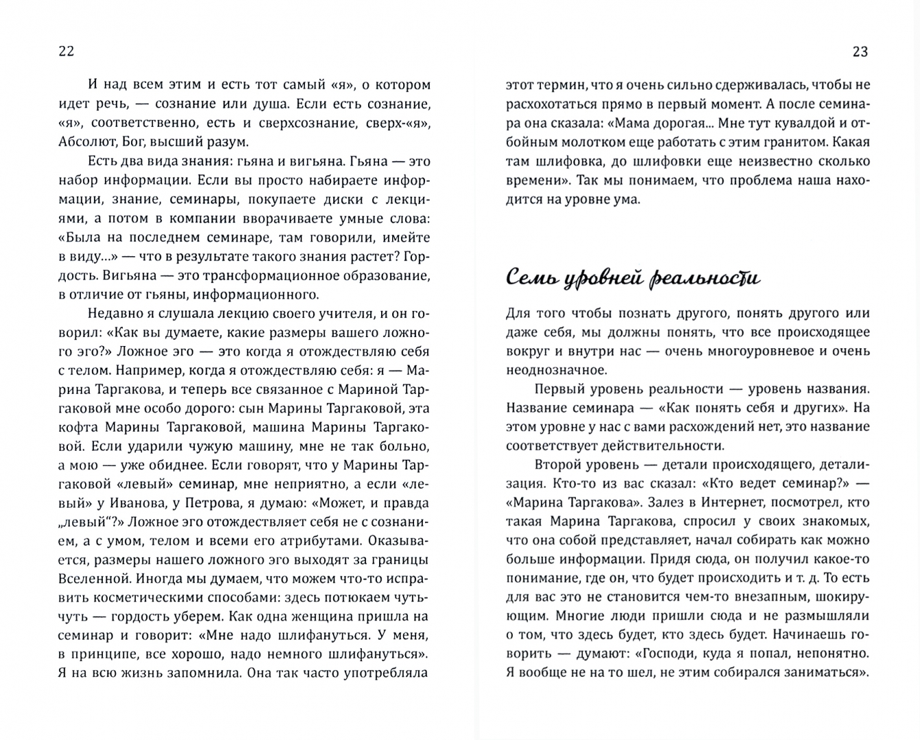 ОписаниеКнига Марины Таргаковой "Как понять себя и других" - про то, как на самом деле познакомиться с самим собой и со своим спутником. Ведь на самом деле мы друг друга не знаем. Но если мы начнем видеть глубину человека, то нам станет друг с другом интересно. И поэтому близкие отношения и вообще доверительные, дружеские отношения - это всегда отношения долгосрочные, потому что если мы будем просто менять партнеров, у нас не будет ни малейшего шанса познать ни себя, ни другого, ни любовь. Нам нужно научиться дорожить теми отношениями, которые у нас есть, и идти вглубь, а не вширь.2-е издание.Книга Марины Таргаковой "Как понять себя и других" - про то, как на самом деле познакомиться с самим собой и со своим спутником. Ведь на самом деле мы друг друга не знаем. Но если мы начнем видеть глубину человека, то нам станет друг с другом интересно. И поэтому близкие отношения и вообще доверительные, дружеские отношения - это всегда отношения долгосрочные, потому что если мы будем просто менять партнеров, у нас не будет ни малейшего шанса познать ни себя, ни другого, ни любовь. Нам нужно научиться дорожить теми отношениями, которые у нас есть, и идти вглубь, а не вширь.2-е издание.