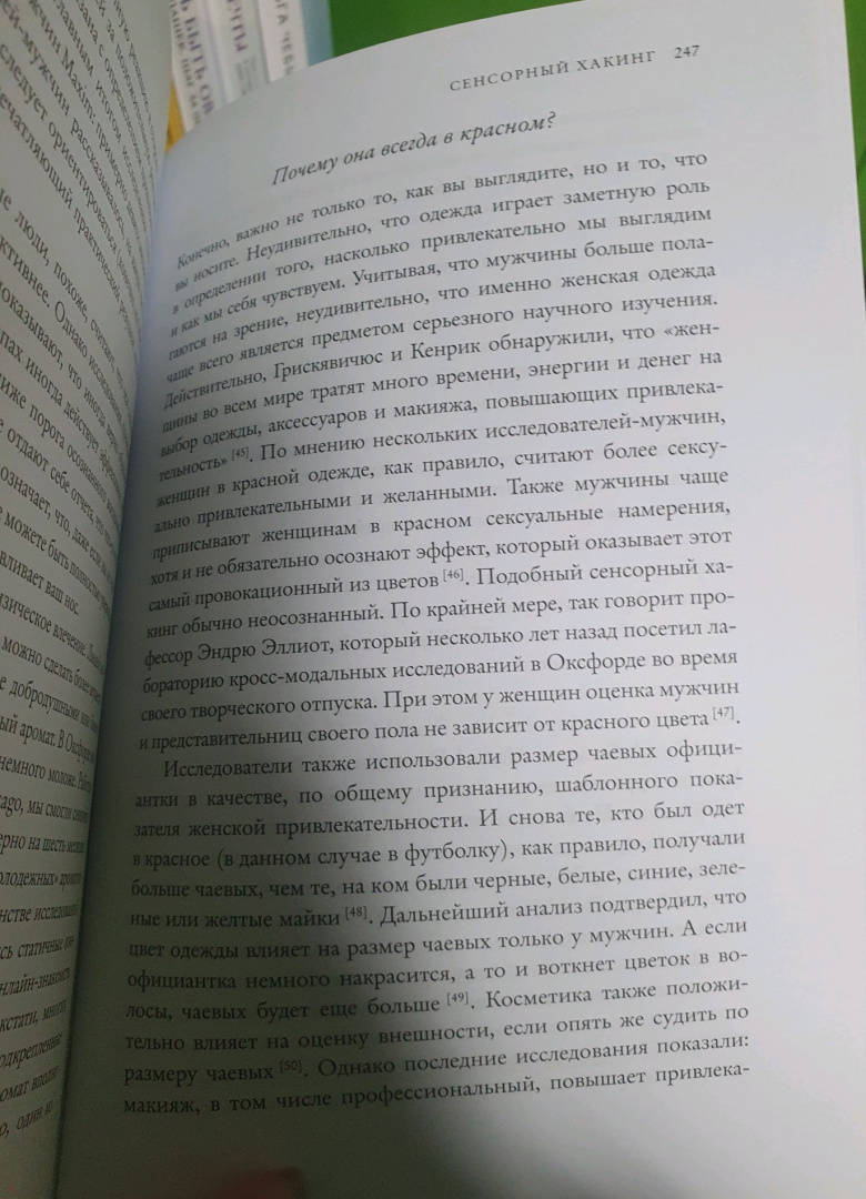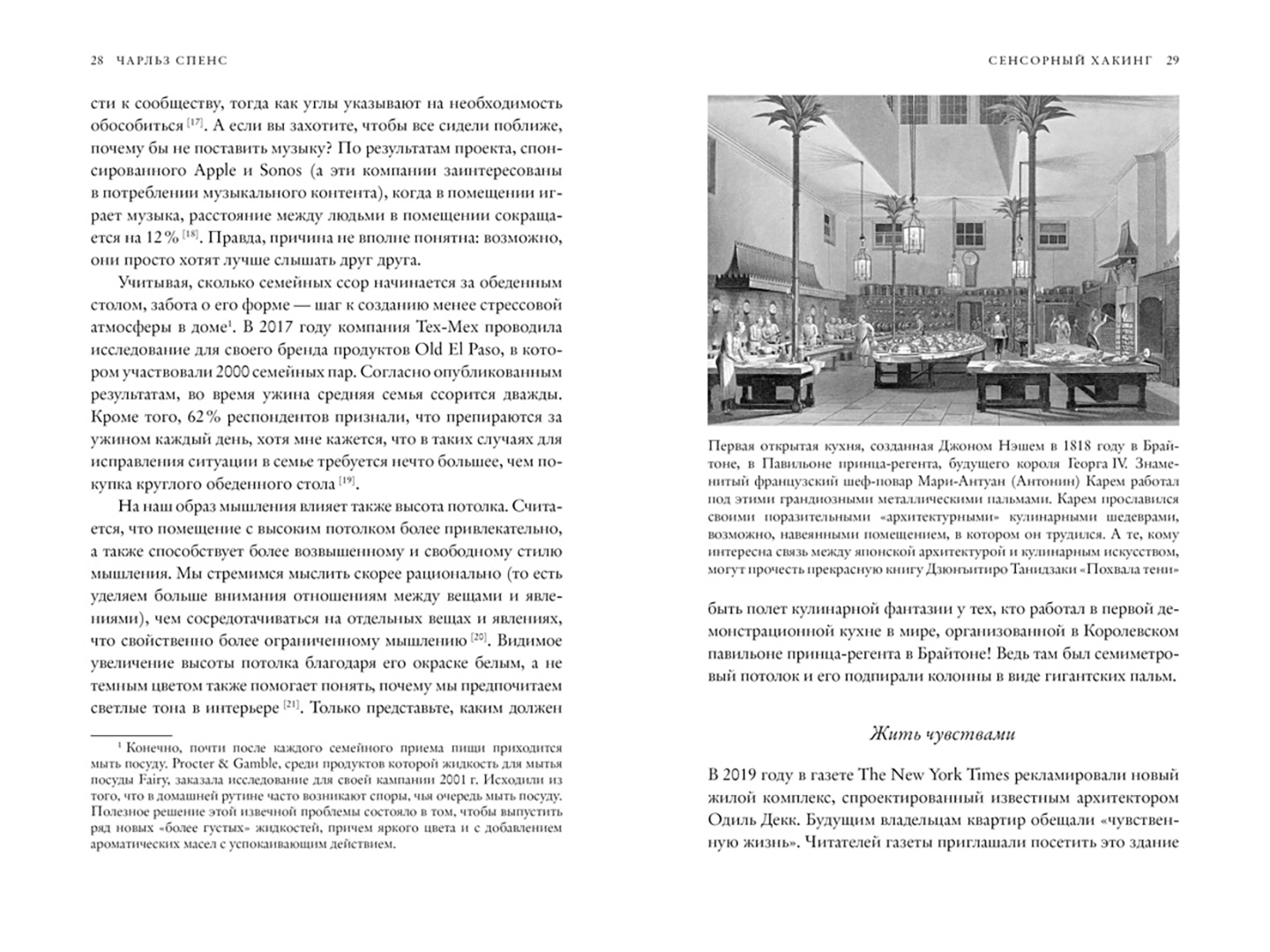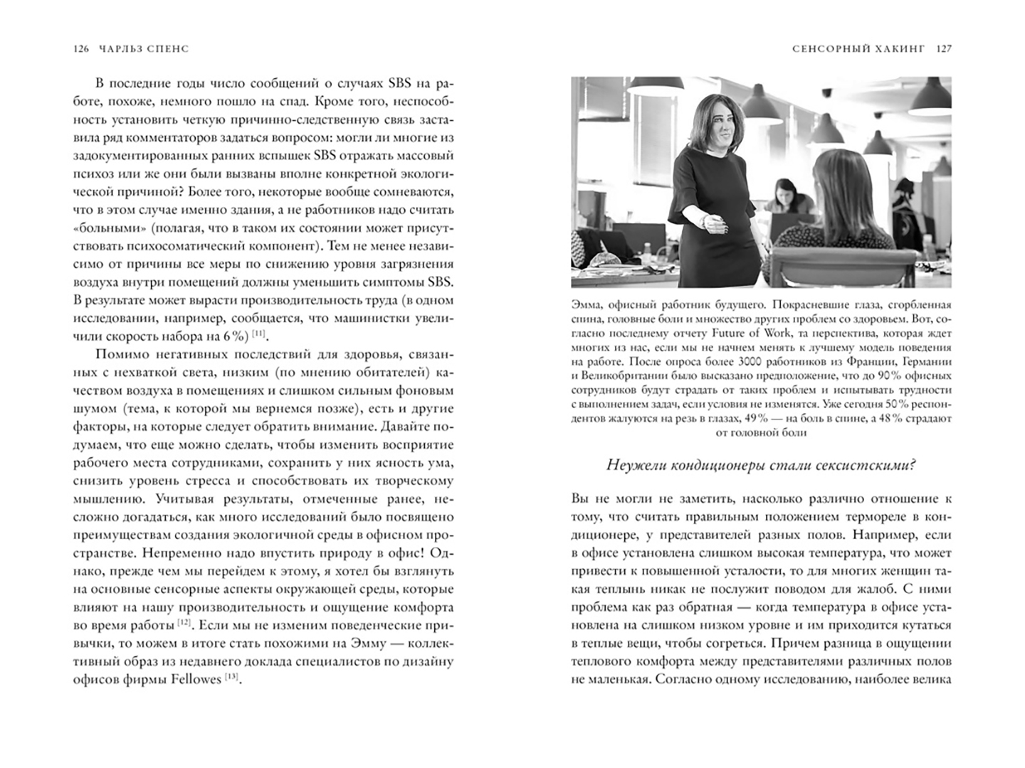 ОписаниеЧарльз Спенс, профессор Оксфордского университета, раскрывает секреты сенсорного восприятия, которое определяет наше самочувствие и влияет на наши суждения и продуктивность. "Что я имею в виду, говоря о "сенсорном хакинге"? Освоить сенсорный хакинг - значит понимать, использовать и стимулировать чувства так, чтобы улучшить социальное, когнитивное и эмоциональное состояние человека. Если мы осознаем уникальные возможности каждого из чувств, если понимаем, как они взаимодействуют, что определяет их направление и наше поведение, то можем задействовать сенсорный опыт наиболее эффективно и таким образом повысить качество жизни тех, кто нам небезразличен, начиная с самих себя. Ваши цели могут быть разными: почувствовать себя спокойнее или энергичнее, сделать свою работу более продуктивной или менее напряженной, лучше высыпаться, лучше выглядеть, получать максимум пользы от тренировок… В любом случае наука о чувствах готова вам помочь" (Чарльз Спенс)Чарльз Спенс, профессор Оксфордского университета, раскрывает секреты сенсорного восприятия, которое определяет наше самочувствие и влияет на наши суждения и продуктивность. "Что я имею в виду, говоря о "сенсорном хакинге"? Освоить сенсорный хакинг - значит понимать, использовать и стимулировать чувства так, чтобы улучшить социальное, когнитивное и эмоциональное состояние человека. Если мы осознаем уникальные возможности каждого из чувств, если понимаем, как они взаимодействуют, что определяет их направление и наше поведение, то можем задействовать сенсорный опыт наиболее эффективно и таким образом повысить качество жизни тех, кто нам небезразличен, начиная с самих себя. Ваши цели могут быть разными: почувствовать себя спокойнее или энергичнее, сделать свою работу более продуктивной или менее напряженной, лучше высыпаться, лучше выглядеть, получать максимум пользы от тренировок… В любом случае наука о чувствах готова вам помочь" (Чарльз Спенс)