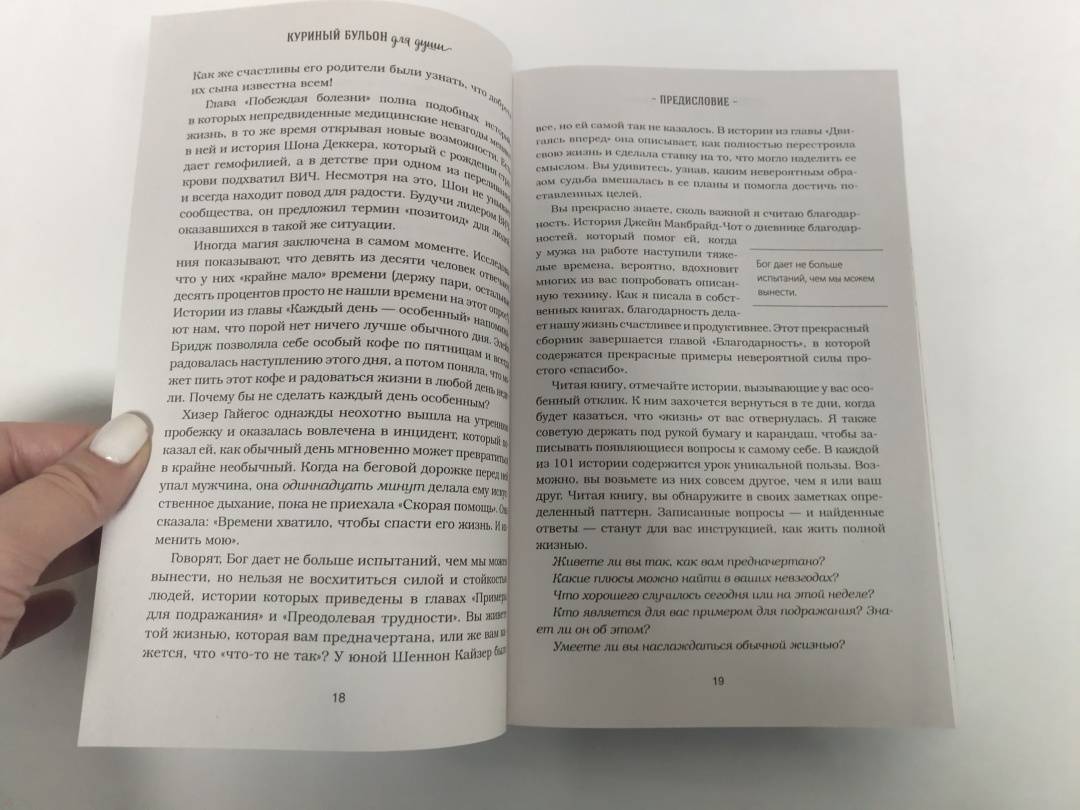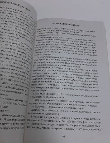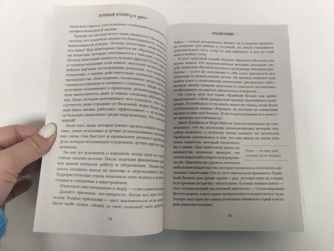 ОписаниеБолее 500 000 000 проданных копий. Феномен в истории книгоиздания. Самая продаваемая в мире серия. История успеха: 1993 год: Книга, которую никто не хотел издавать / #1 New York Times Bestseller / 20 000 проданных копий. 2003 год: плюс 180 новых книг в серии / Серия-бестселлер / 80 000 проданных копий. 2013 год: Около 250 книг в серии / Самая продаваемая серия в истории / Более 500 000 000 проданных экземпляров. Как всё начиналось История создания книги "Куриный бульон" вдохновляет не меньше, чем маленькие истории, из которых она состоит. Джек Кэнфилд и Марк Хансен, оба популярные мотивационные спикеры, любили свои выступления "приправить" парочкой вдохновляющих историй. После тренингов многие обращались к ним: "А где можно найти ту историю про девочку-скаута? Я бы купил книгу ее сыну", "А та история про парня и щенка - ее можно где-то прочитать?". В течение года Кэнфилд и Хансен записывали истории, которые пережили сами или услышали от знакомых, и когда их набралось 101 - разослали по издательствам. Они получили 144 отказа. Тогда Джек и Марк решили найти покупателей еще до публикации книги, в надежде переубедить издателей. Они рассказывали о ней своим знакомым и слушателям тренингов и всех, кто был заинтересован, просили написать расписку о покупке будущей книги. Когда таких расписок набралось более 20 000, Джек и Марк снова обратились к издателям. Книгу напечатали, и все, кто давал обещание, купили ее. А дальше… продажи встали. Джек и Марк не хотели сдаваться. У них была цель - продать 1,5 миллиона за 1,5 года. Тогда они придумали "Правило пяти": ежедневно совершать по пять активных шагов по продвижению и продаже книги. С этого момента Кэнфилд и Хансен каждый день рассылали по 5 экземпляров журналистам, голливудским звездам, делали по 5 звонков руководителям компаний с предложением подарить книги сотрудникам. В итоге через 1,5 года было продано 1,3 миллиона экземпляров. Издатель попросил написать продолжение. Со временем книга, которую отвергли 144 издательства, стала одним из самых успешных проектов в истории книгоиздания.СвернутьБолее 500 000 000 проданных копий. Феномен в истории книгоиздания. Самая продаваемая в мире серия. История успеха: 1993 год: Книга, которую никто не хотел издавать / #1 New York Times Bestseller / 20 000 проданных копий. 2003 год: плюс 180 новых книг в серии / Серия-бестселлер / 80 000 проданных копий. 2013 год: Около 250 книг в серии / Самая продаваемая серия в истории / Более 500 000 000 проданных экземпляров. Как всё начиналось История создания книги "Куриный бульон" вдохновляет не меньше, чем маленькие истории, из которых она состоит. Джек Кэнфилд и Марк Хансен, оба популярные мотивационные спикеры, любили свои выступления "приправить" парочкой вдохновляющих историй. После тренингов многие обращались к ним: "А где можно найти ту историю про девочку-скаута? Я бы купил книгу ее сыну", "А та история про парня и щенка - ее можно где-то прочитать?". В течение года Кэнфилд и Хансен записывали истории, которые пережили сами или услышали от знакомых, и когда их набралось 101 - разослали по издательствам. Они получили 144 отказа. Тогда Джек и Марк решили найти покупателей еще до публикации книги, в надежде переубедить издателей. Они рассказывали о ней своим знакомым и слушателям тренингов и всех, кто был заинтересован, просили написать расписку о покупке будущей книги. Когда таких расписок набралось более 20 000, Джек и