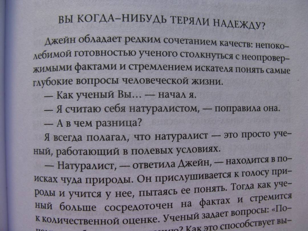СвернутьКак сохранить надежду в таком нестабильном мире? Глядя на заголовки СМИ - усугубляющийся климатический кризис, глобальная пандемия, утрата биоразнообразия, политические потрясения, - трудно быть оптимистом.Джейн Гудолл - британский приматолог, более 45 лет изучавшая социальную жизнь шимпанзе, посол мира ООН. В книге "Надежное будущее" она совместно с Дугласом Абрамсом, соавтором всемирно известного бестселлера "Книга радости", исследует в дружеском диалоге одно из самых загадочных свойств человеческой природы - надежду. Джейн называет четыре причины верить в лучшее: удивительный человеческий интеллект, стойкость природы, потенциал молодежи и неукротимый человеческий дух.Джейн затрагивает жизненно важные вопросы, в том числе:- Как сохранять надежду, когда все вокруг кажется безнадежным?- Как взращивать надежду в наших детях?- Как, обретя надежду, переходить к действиям?Обсуждая опыт, сформировавший ее убеждения, Джейн рассказывает историю о том, как она стала посланницей надежды, о жизни во время Второй мировой войны, о годах, проведенных в Гомбе, об осознании своей миссии сторонника экологической справедливости. Также она впервые делится планами на свое следующее, возможно последнее, приключение.Это редкий и глубокий взгляд не только на природу надежды, но и на сердце и разум женщины, которая провела всю жизнь в борьбе за наше будущее.Надежда еще есть, и эта книга - руководство по ее поиску.Джейн Гудолл – крупнейший британский приматолог, этолог и антрополог, посол мира ООН, отмеченный множеством международных наград за вклад в работу по защите животных и охране окружающей среды. Джейн почти девяносто лет. Она выросла во время Второй мировой войны и за восемь десятилетий стала свидетелем многих мировых трагедий. Но это не лишило ее научного оптимизма, мужества и… надежды. На страницах книги, написанной формате диалогов с другим известным писателем Дугласом Абрамсом, ученый и филантроп поделится своими мыслями и рассуждениями о будущем планеты и ее жителей. Эта книга – о том, как сохранять веру в человечество в непростые для него времена. И она написана для тех, кто ищет помощи, утешения и поддержки в состоянии неопределённости.