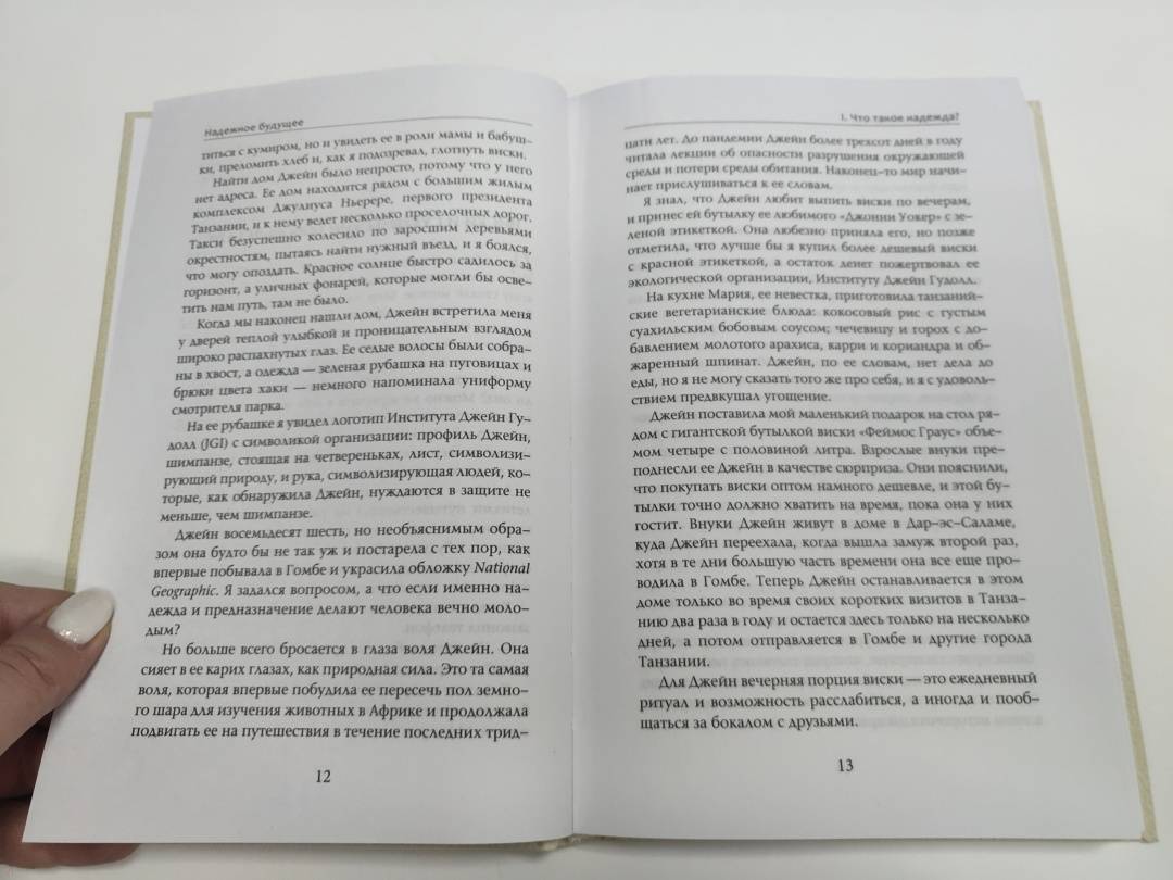 ОписаниеКак сохранить надежду в таком нестабильном мире? Глядя на заголовки СМИ - усугубляющийся климатический кризис, глобальная пандемия, утрата биоразнообразия, политические потрясения, - трудно быть оптимистом.Джейн Гудолл - британский приматолог, более 45 лет изучавшая социальную жизнь шимпанзе, посол мира ООН. В книге "Надежное будущее" она совместно с Дугласом Абрамсом, соавтором всемирно известного бестселлера "Книга радости", исследует в дружеском диалоге одно из самых загадочных свойств человеческой природы - надежду. Джейн называет четыре причины верить в лучшее: удивительный человеческий интеллект, стойкость природы, потенциал молодежи и неукротимый человеческий дух.Джейн затрагивает жизненно важные вопросы, в том числе:- Как сохранять надежду, когда все вокруг кажется безнадежным?- Как взращивать надежду в наших детях?- Как, обретя надежду, переходить к действиям?Обсуждая опыт, сформировавший ее убеждения, Джейн рассказывает историю о том, как она стала посланницей надежды, о жизни во время Второй мировой войны, о годах, проведенных в Гомбе, об осознании своей миссии сторонника экологической справедливости. Также она впервые делится планами на свое следующее, возможно последнее, приключение.Это редкий и глубокий взгляд не только на природу надежды, но и на сердце и разум женщины, которая провела всю жизнь в борьбе за наше будущее.Надежда еще есть, и эта книга - руководство по ее поиску.Джейн Гудолл – крупнейший британский приматолог, этолог и антрополог, посол мира ООН, отмеченный множеством международных наград за вклад в работу по защите животных и охране окружающей среды. Джейн почти девяносто лет. Она выросла во время Второй мировой войны и за восемь десятилетий стала свидетелем многих мировых трагедий. Но это не лишило ее научного оптимизма, мужества и… надежды. На страницах книги, написанной формате диалогов с другим известным писателем Дугласом Абрамсом, ученый и филантроп поделится своими мыслями и рассуждениями о будущем планеты и ее жителей. Эта книга – о том, как сохранять веру в человечество в непростые для него времена. И она написана для тех, кто ищет помощи, утешения и поддержки в состоянии неопределённости.