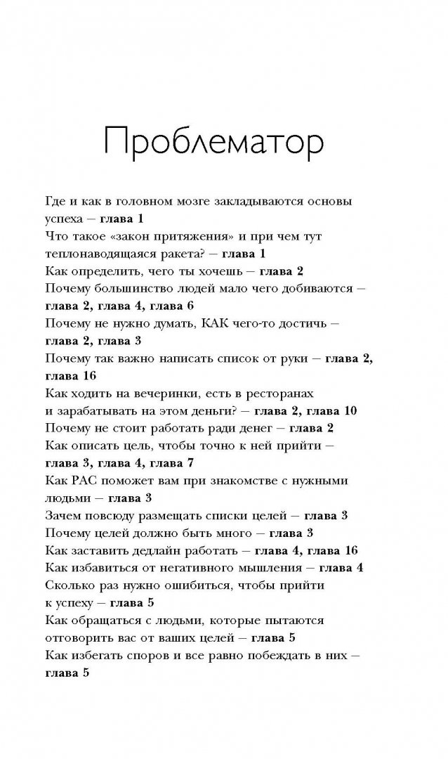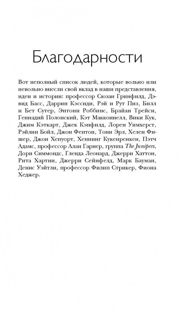 ОписаниеХочешь, чтобы все намеченное осуществлялось? Чтобы руководство без возражений повышало зарплату? Чтобы самые амбициозные проекты оборачивались успехом? Чтобы личная жизнь складывалась по лучшему сценарию? Контролируй свою РАС! Так называемую ретикулярную активирующую систему - участок мозга, который отвечает за успешность человека. Это только со стороны может показаться, что ее действие сродни чуду: желания исполняются, поставленные цели достигаются, и все проблемы незаметно находят оптимальное разрешение. На деле же никакого чуда нет, а есть проверенная и научно обоснованная методика, разработанная гуру психологии, авторами мирового бестселлера "Язык телодвижений" и исключительно счастливыми людьми - Барбарой и Алланом ПИЗ.Эта книга даст вам ответ на вопросы:- Почему я оказался там, где нахожусь, и куда двигаться дальше?- Чего я на самом деле хочу от жизни и как это получить?- Как перестать реагировать на манипуляции окружающих и стать хозяином своей жизни?- Как обходить препятствия и достигать того, что кажется недостижимым?СвернутьХочешь, чтобы все намеченное осуществлялось? Чтобы руководство без возражений повышало зарплату? Чтобы самые амбициозные проекты оборачивались успехом? Чтобы личная жизнь складывалась по лучшему сценарию? Контролируй свою РАС! Так называемую ретикулярную активирующую систему - участок мозга, который отвечает за успешность человека. Это только со стороны может показаться, что ее действие сродни чуду: желания исполняются, поставленные цели достигаются, и все проблемы незаметно находят оптимальное разрешение. На деле же никакого чуда нет, а есть проверенная и научно обоснованная методика, разработанная гуру психологии, авторами мирового бестселлера "Язык телодвижений" и исключительно счастливыми людьми - Барбарой и Алланом ПИЗ.Эта книга даст вам ответ на вопросы:- Почему я оказался там, где нахожусь, и куда двигаться дальше?- Чего я на самом деле хочу от жизни и как это получить?- Как перестать реагировать на манипуляции окружающих и стать хозяином своей жизни?- Как обходить препятствия и достигать того, что кажется недостижимым?СвернутьСвернуть