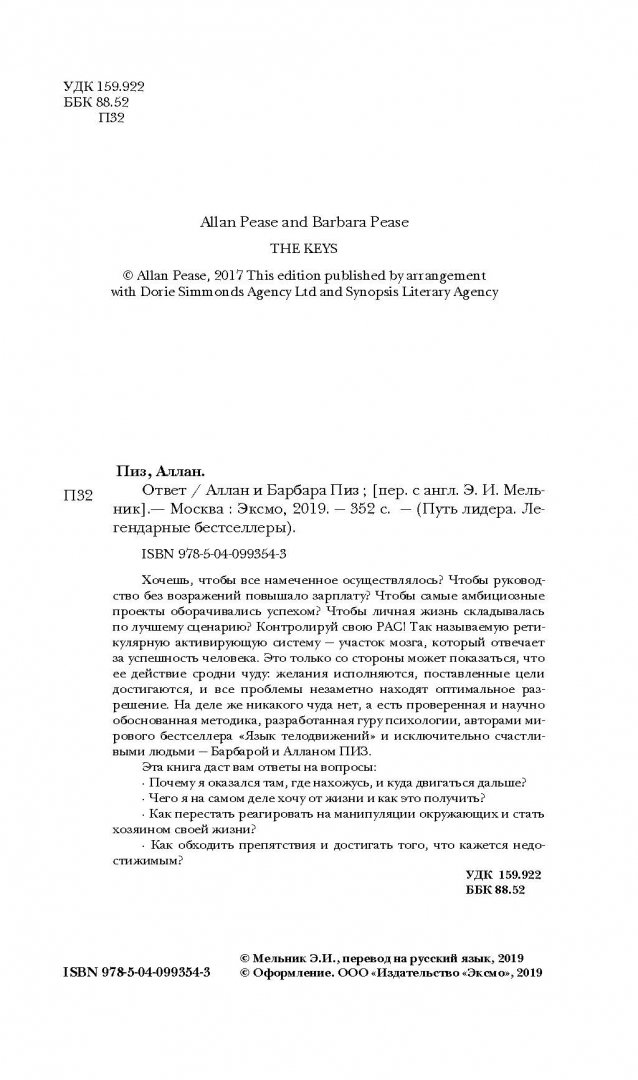 Объем, стр. 352 ISBN 978-5-04-099354-3 Автор Пиз Аллан, Пиз Барбара, Мельник Элеонора Игоревна Переводчик Мельник Элеонора Игоревна Серия Путь лидера. Легендарные бестселлеры Минимальный возраст 16+ Год издания книги 2019 Тип обложки Твердый переплет Иллюстрации Черно-белые Вес, г 450г Размеры 215х128х24 мм - Отзывы
