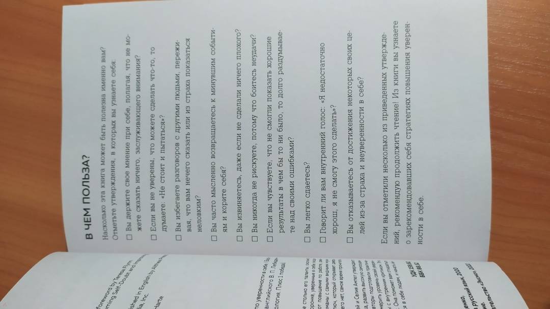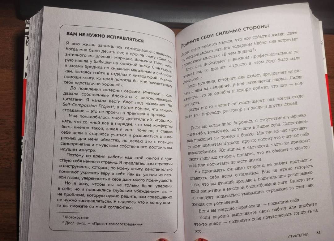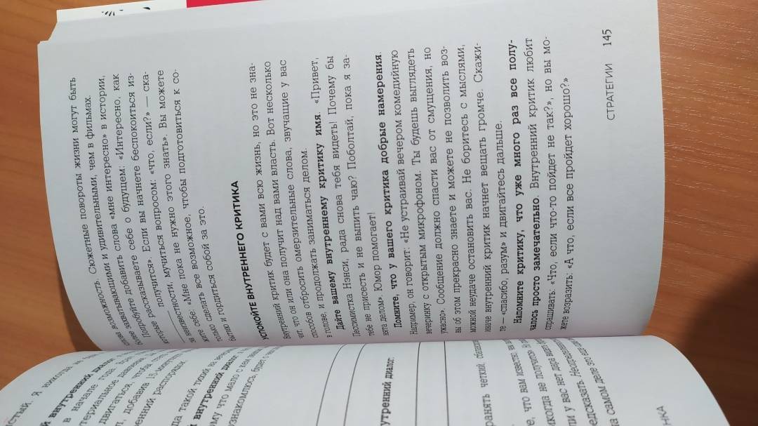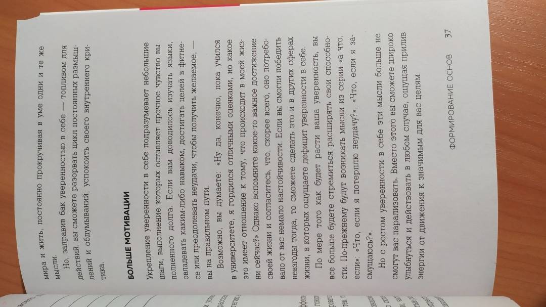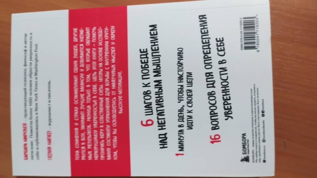ОписаниеСоциологи обнаружили, что наша уверенность в себе часто формируется окружением, включая семью, друзей и СМИ. Однако это не означает, что уровень уверенности не подвластен лично вам. С этой книгой вам не придется изменять свою личность, чтобы насладиться ощущением уверенности в себе. Как мудро сказал Махатма Ганди: "Вы можете потрясти мир мягко". Все практики, упражнения и полезные рекомендации в книге основаны на новейших достижениях в КПТ - когнитивно-поведенческой терапии и ТПО - терапии принятия и обязательств. Она написана доступным языком, в ней изложен уникальный опыт. Хотя книга основана на научных исследованиях, вам не придется изучать незнакомую терминологию и продираться через долгие теоретизированные описания. Читайте книгу в своем темпе и выполняйте упражнения в любой удобной для вас обстановке, будь то тихий парк или ваш собственный дом, где можно включить на всю громкость любимую музыку. Да, это книга для работы, но вы можете поиграть с ней и сделать это весело. - Уверенный в себе человек может принять полезную обратную связь и действовать в соответствии с ней, не занимаясь защитой. Когда чувство собственной значимости больше не затмевает ваш разум, вы вполне можете справиться с критикой. И даже с абсолютным неприятием, не позволяя сломить себя. - Как это ни парадоксально, но если вы будете позволять себе чаще ошибаться, то достигнете большего успеха. Потому что не будете ждать, пока все будет на сто процентов идеально, чтобы начать действовать. Чем больше выстрелов, тем больше попаданий в цель. - Уверенность в себе - готовность сделать шаг к достижению цели, несмотря на тревогу и неопределенность результата. - Можно поверить, что у всех вокруг идеальные браки, все строят карьеру мечты, а сами выглядят как супермодели. Но помните: то, что люди публикуют в интернете, тщательно отбирается и редактируется. У всех бывают плохие дни, все сталкиваются с неуверенностью в себе и физическими несовершенствами. - Ценности - это принципы, которые придают смысл нашей жизни и позволяют нам продолжать двигаться дальше, несмотря на любые невзгоды. "Авторы книги буквально берут читателя за руку и говорят: "Мы тебе поможем". Издание будет полезно тем, кто не просто захотел стать увереннее, но и готов к диалогу с самим собой: в конце каждой главы вам зададут вопрос, ответ на который приблизит к цели. Отвечать будет не всегда приятно: придётся вспомнить травмы, нереализованные цели и ситуации, когда вам было неловко. Но результат того стоит. Шаг за шагом читатель познаёт методики обретения внутренней силы и учится ею управлять. А ещё привыкает пробовать новое и не ругать себя за ошибки. В общем, мастрид для тех, кто не решается жить так, как хочется, но готов это изменить". - Полина Накрайникова, главный редактор "Лайфхакера"СвернутьСоциологи обнаружили, что наша уверенность в себе часто формируется окружением, включая семью, друзей и СМИ. Однако это не означает, что уровень уверенности не подвластен лично вам. С этой книгой вам не придется изменять свою личность, чтобы насладиться ощущением уверенности в себе. Как мудро сказал Махатма Ганди: "Вы можете потрясти мир мягко". Все практики, упражнения и полезные рекомендации в книге основаны на новейших достижениях в КПТ - когнитивно-поведенческой терапии и ТПО - терапии принятия и обязател