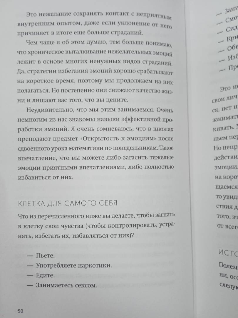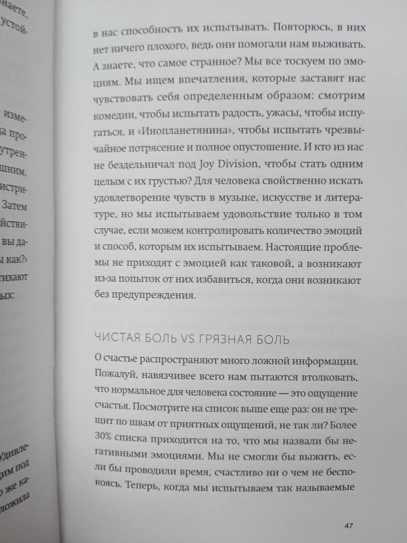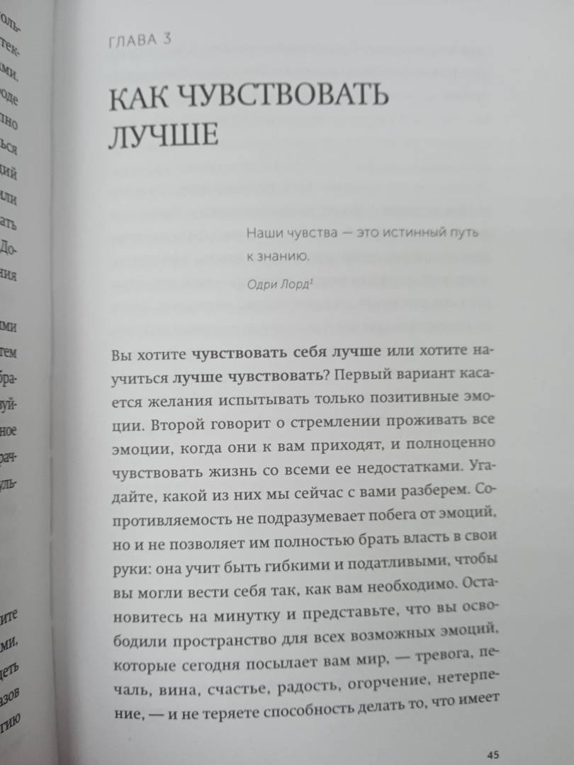 ОписаниеИспытывать негативные эмоции нормально. Но иногда под их влиянием мы увязаем в назойливых мыслях и самобичевании, а в результате теряем мотивацию, совершаем одни и те же ошибки и бросаем то, что для нас важно. Клинический психолог Сэм Акбар знает о таких проблемах всё, так как много лет работает с людьми в кризисных ситуациях. Вы узнаете о полезных техниках и упражнениях из терапии принятия и ответственности и научитесь пропевать свои мысли на разные голоса, становиться для себя небом, открывать кинотеатр в голове, серфить на волнах желаний, бросать якорь во время эмоционального шторма и т. д. Все они помогут улучшить эмоциональное состояние, справиться с синдромом самозванца и выгоранием, избавиться от вредных установок и зависимости от сторонней оценки. А в итоге - получить ресурс для жизни, которую мы хотим.Испытывать негативные эмоции нормально. Но иногда под их влиянием мы увязаем в назойливых мыслях и самобичевании, а в результате теряем мотивацию, совершаем одни и те же ошибки и бросаем то, что для нас важно. Клинический психолог Сэм Акбар знает о таких проблемах всё, так как много лет работает с людьми в кризисных ситуациях. Вы узнаете о полезных техниках и упражнениях из терапии принятия и ответственности и научитесь пропевать свои мысли на разные голоса, становиться для себя небом, открывать кинотеатр в голове, серфить на волнах желаний, бросать якорь во время эмоционального шторма и т. д. Все они помогут улучшить эмоциональное состояние, справиться с синдромом самозванца и выгоранием, избавиться от вредных установок и зависимости от сторонней оценки. А в итоге - получить ресурс для жизни, которую мы хотим.