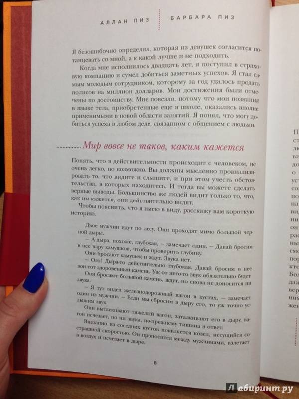 ОписаниеМировой бестселлер от экспертов по взаимоотношениям Аллана и Барбары Пиз теперь в роскошном подарочном оформлении! Этот самый популярный и авторитетный в мире учебник "чтения мыслей окружающих по их жестам" затрагивает абсолютно ВСЕ аспекты личной жизни и профессиональной деятельности любого человека. В книге содержится множество фотографий мировых знаменитостей, которые в данном случае используются в качестве своеобразных "учебных пособий". Ни один жест не остался без внимания! Мимика, позы, манеры, походка, взгляд - полная расшифровка всех телодвижений, по которым можно легко разгадать настоящие чувства и мысли других людей - все это в книге всемирно известных психологов!"Читать любого человека как книгу", выбирать правильную линию поведения, чувствовать себя уверенно и непринужденно в любой обстановке, принимать самые верные решения - все это теперь реально и доступно каждому. Эта книга также поможет вам осознать и собственные невербальные сигналы, научит использовать их для эффективного общения. Не позволяйте собой манипулировать! Изучайте язык телодвижений и вы непременно добьетесь успеха во всем!СвернутьМировой бестселлер от экспертов по взаимоотношениям Аллана и Барбары Пиз теперь в роскошном подарочном оформлении! Этот самый популярный и авторитетный в мире учебник "чтения мыслей окружающих по их жестам" затрагивает абсолютно ВСЕ аспекты личной жизни и профессиональной деятельности любого человека. В книге содержится множество фотографий мировых знаменитостей, которые в данном случае используются в качестве своеобразных "учебных пособий". Ни один жест не остался без внимания! Мимика, позы, манеры, походка, взгляд - полная расшифровка всех телодвижений, по которым можно легко разгадать настоящие чувства и мысли других людей - все это в книге всемирно известных психологов!"Читать любого человека как книгу", выбирать правильную линию поведения, чувствовать себя уверенно и непринужденно в любой обстановке, принимать самые верные решения - все это теперь реально и доступно каждому. Эта книга также поможет вам осознать и собственные невербальные сигналы, научит использовать их для эффективного общения. Не позволяйте собой манипулировать! Изучайте язык телодвижений и вы непременно добьетесь успеха во всем!СвернутьСвернуть