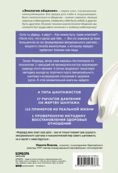 Описание"Если ты уйдешь, я умру!" "Как можно быть таким эгоистом?" "После того, что я сделал для тебя…" Все это знакомые до боли большинству из нас формулировки эмоционального шантажа - мощного способа манипуляции, к которому нередко прибегают близкие нам люди. Сюзен Форвард, автор семи мировых бестселлеров по психологии, с присущей ей проницательностью анализирует природу этого явления. А потом предлагает пошаговую методику выхода из порочного круга эмоционального шантажа и возвращения отношений в здоровое русло.В этой увлекательной книге вы найдете:- 4 типа шантажистов,- 17 рычагов давления на жертву шантажа,- 112 примеров из реальной жизни,- 1 проверенную методику восстановления здоровых отношений."Если ты уйдешь, я умру!" "Как можно быть таким эгоистом?" "После того, что я сделал для тебя…" Все это знакомые до боли большинству из нас формулировки эмоционального шантажа - мощного способа манипуляции, к которому нередко прибегают близкие нам люди. Сюзен Форвард, автор семи мировых бестселлеров по психологии, с присущей ей проницательностью анализирует природу этого явления. А потом предлагает пошаговую методику выхода из порочного круга эмоционального шантажа и возвращения отношений в здоровое русло.В этой увлекательной книге вы найдете:- 4 типа шантажистов,- 17 рычагов давления на жертву шантажа,- 112 примеров из реальной жизни,- 1 проверенную методику восстановления здоровых отношений.