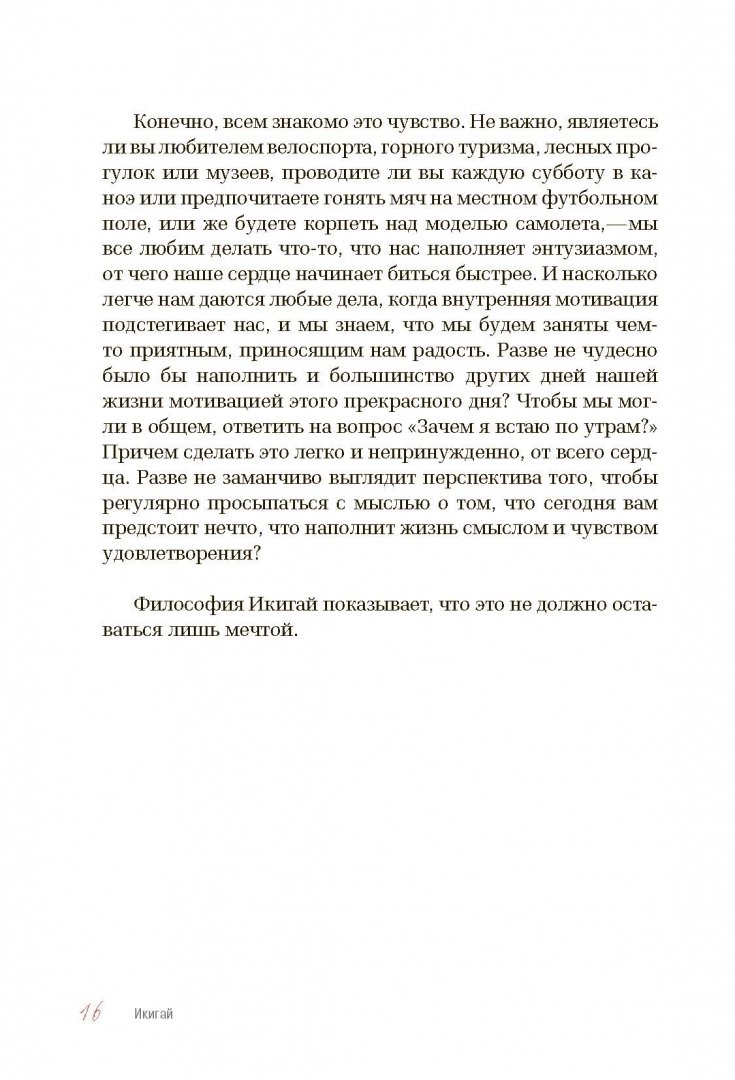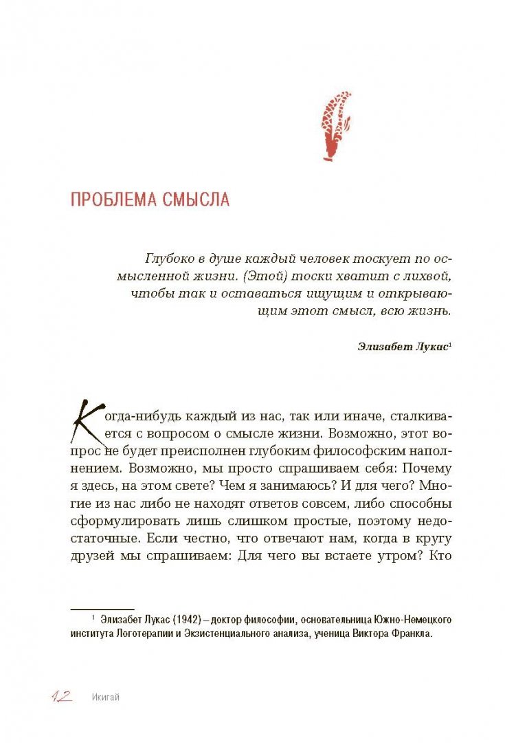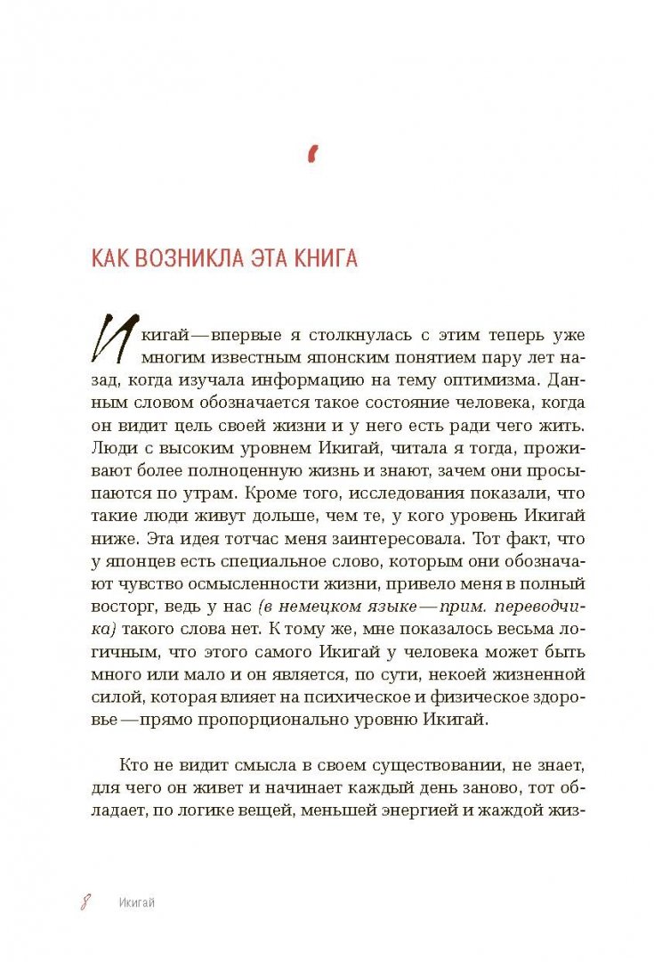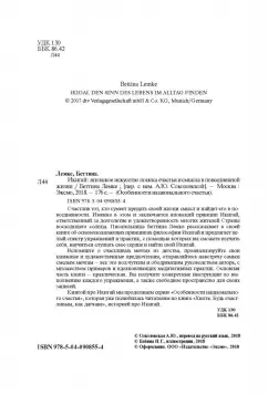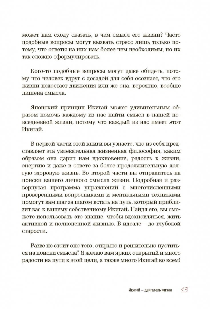 ОписаниеСчастлив тот, кто сумеет придать своей жизни смысл и найдет его в повседневности. Именно в этом и заключается японский принцип Икигай, ответственный за долголетие и удовлетворенность многих жителей Страны восходящего солнца. Писательница Беттина Лемке рассказывает в своей книге об основополагающих принципах философии Икигай и предлагает целый спектр упражнений и практик, с помощью которых вы сможете изучить себя, научиться слушать свое сердце и найти свой Икигай.Вспомните о счастливых мечтах из детства, проанализируйте свои книжные и художественные предпочтения, отправляйтесь навстречу самым смелым мечтам - все это под чутким и ободряющим руководством автора, с множеством примеров и вдохновляющих медитативных практик. Основная часть книги - практическая. Вы получите конкретные инструкции по выполнению каждого упражнения, а также свободное пространство для своих записей.Книгой про Икигай мы продолжаем серию "особенности национального счастья", которая уже полюбилась читателям по книге "Хюгге. Будь счастливым, как датчане", историей про Икигай.СвернутьСчастлив тот, кто сумеет придать своей жизни смысл и найдет его в повседневности. Именно в этом и заключается японский принцип Икигай, ответственный за долголетие и удовлетворенность многих жителей Страны восходящего солнца. Писательница Беттина Лемке рассказывает в своей книге об основополагающих принципах философии Икигай и предлагает целый спектр упражнений и практик, с помощью которых вы сможете изучить себя, научиться слушать свое сердце и найти свой Икигай.Вспомните о счастливых мечтах из детства, проанализируйте свои книжные и художественные предпочтения, отправляйтесь навстречу самым смелым мечтам - все это под чутким и ободряющим руководством автора, с множеством примеров и вдохновляющих медитативных практик. Основная часть книги - практическая. Вы получите конкретные инструкции по выполнению каждого упражнения, а также свободное пространство для своих записей.Книгой про Икигай мы продолжаем серию "особенности национального счастья", которая уже полюбилась читателям по книге "Хюгге. Будь счастливым, как датчане", историей про Икигай.СвернутьСвернуть