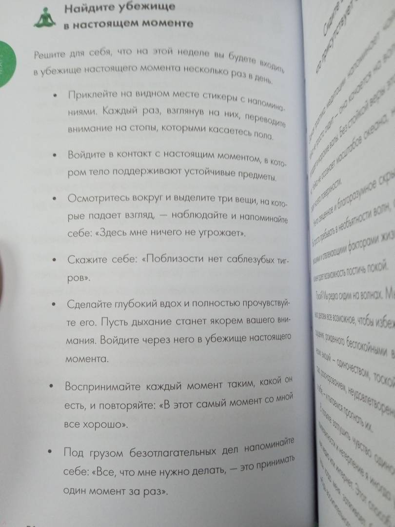 ОписаниеМы привыкли вести активный и весьма напряженный образ жизни: стремимся все успеть и сделать как можно больше. В этой гонке мы часто забываем о себе и о том, что иногда очень важно замедлиться, дышать и ощущать себя в настоящем моменте.В книге вы найдете 52 простых для выполнения и приятных ритуала - на каждую неделю наступающего года. Выполняя их регулярно, вы привыкнете и научитесь уделять время себя, прислушиваться к своим ощущениям, заботиться о своем состоянии и почувствуете себя лучше.Эта книга поможет сделать новый год счастливее и спокойнее.Автор преподает внимательность с 2000 года. Она обучалась MBSR (снижение стресса на основе внимательности) в центре внимательности при Медицинском центре Массачусетского университета, ученица Джона Кабат-Зинна. В настоящее время преподает на кафедрах психиатрии и акушерства и гинекологии в Орегонском университете здоровья и науки, где она занимается исследованиями внимательности и женского здоровья.Мы привыкли вести активный и весьма напряженный образ жизни: стремимся все успеть и сделать как можно больше. В этой гонке мы часто забываем о себе и о том, что иногда очень важно замедлиться, дышать и ощущать себя в настоящем моменте.В книге вы найдете 52 простых для выполнения и приятных ритуала - на каждую неделю наступающего года. Выполняя их регулярно, вы привыкнете и научитесь уделять время себя, прислушиваться к своим ощущениям, заботиться о своем состоянии и почувствуете себя лучше.Эта книга поможет сделать новый год счастливее и спокойнее.Автор преподает внимательность с 2000 года. Она обучалась MBSR (снижение стресса на основе внимательности) в центре внимательности при Медицинском центре Массачусетского университета, ученица Джона Кабат-Зинна. В настоящее время преподает на кафедрах психиатрии и акушерства и гинекологии в Орегонском университете здоровья и науки, где она занимается исследованиями внимательности и женского здоровья.