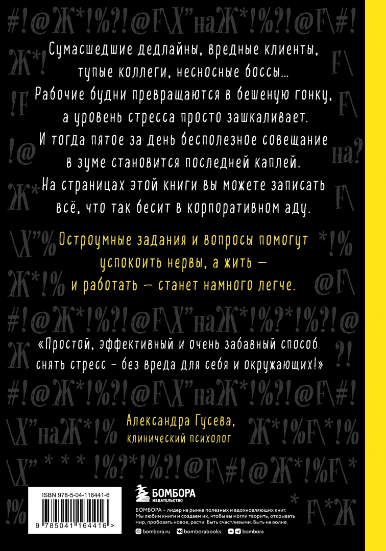 ОписаниеЕсли нервы на пределе, а дедлайны горят - самое время открыть эту книгу! На ее страницах вы найдете остроумные вопросы и задания, которые помогут методично и откровенно высказать всё, что вы думаете о своих коллегах, боссах, клиентах, корпоративах и других невероятно раздражающих моментах рабочих будней. Прекрасная возможность снять стресс и набраться сил для новых трудовых подвигов - и даже увольняться не придется!Если нервы на пределе, а дедлайны горят - самое время открыть эту книгу! На ее страницах вы найдете остроумные вопросы и задания, которые помогут методично и откровенно высказать всё, что вы думаете о своих коллегах, боссах, клиентах, корпоративах и других невероятно раздражающих моментах рабочих будней. Прекрасная возможность снять стресс и набраться сил для новых трудовых подвигов - и даже увольняться не придется!