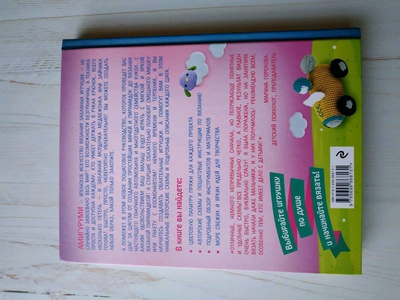 ОписаниеСамая актуальная техника вязания игрушек - амигуруми - в новой книге мировой звезды вязания Марии Алехандры Монтеро! Книга полна находок и сюрпризов: вы когда-нибудь вязали машинку, самолет или настоящую ракету для сына? Или мячики и пирамидки для самых маленьких? А замечательное дружное семейство кукол, которые во все это играют? А еще тут есть нежные мишки и милые зайки, злые птички и настоящий смелый космонавт! И все это настолько просто с подробнейшими пояснениями и идеальными авторскими схемами, что справится даже ребенок! Гарантируем: вы не сможете остановиться и свяжете целый сказочный мир, наполненный теплом ваших рук!Самая актуальная техника вязания игрушек - амигуруми - в новой книге мировой звезды вязания Марии Алехандры Монтеро! Книга полна находок и сюрпризов: вы когда-нибудь вязали машинку, самолет или настоящую ракету для сына? Или мячики и пирамидки для самых маленьких? А замечательное дружное семейство кукол, которые во все это играют? А еще тут есть нежные мишки и милые зайки, злые птички и настоящий смелый космонавт! И все это настолько просто с подробнейшими пояснениями и идеальными авторскими схемами, что справится даже ребенок! Гарантируем: вы не сможете остановиться и свяжете целый сказочный мир, наполненный теплом ваших рук!