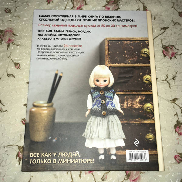 ОписаниеСамая популярная книга по вязанию кукольной одежды от лучших японских мастеров! В ней собраны самые современные, интересные и стильные модели. В книге вы найдете 24 проекта для вязания крючком и спицами по самым известным мировым техникам. Подробные пошаговые инструкции и красочные иллюстрации подарят вам удовольствие от работы над проектами.Самая популярная книга по вязанию кукольной одежды от лучших японских мастеров! В ней собраны самые современные, интересные и стильные модели. В книге вы найдете 24 проекта для вязания крючком и спицами по самым известным мировым техникам. Подробные пошаговые инструкции и красочные иллюстрации подарят вам удовольствие от работы над проектами.