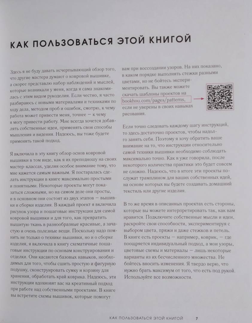 СвернутьКовровая вышивка - древнее искусство, родом из Персии. И это название отнюдь не означает, что с ее помощью можно создавать только ковры. Просто технология очень похожа на ту, которую использовали ковроделы во все времена и во всех странах. Популярность современной ковровой вышивки легко объясняется простотой техники и рисунка и одновременно удивительной красотой предметов быта, аксессуаов или декора, которые она позволяет создать. И для этого не нужны особые навыки и умения, достаточно вкуса и немного времени, иглы или специального крючка и небольшого количества ниток. Красивая вещь получится абсолютно у всех.Канадский мастер и педагог Арунна Куннораж научит вас создавать стильные и красивые предметы и разрабатывать собственные дизайны, сочетать цвета и строить композицию, посвятит в тонкости и секреты мастерства, котрые сделают ваши работы по-настоящему уникальными и неповторимыми. Ковровая вышивка снова в моде. Дерзайте!Красочная и стильная книга канадского мастера и преподавателя прикладного искусства Арунны Куннораж наполнена подробными инструкциями и мастер-классами по
